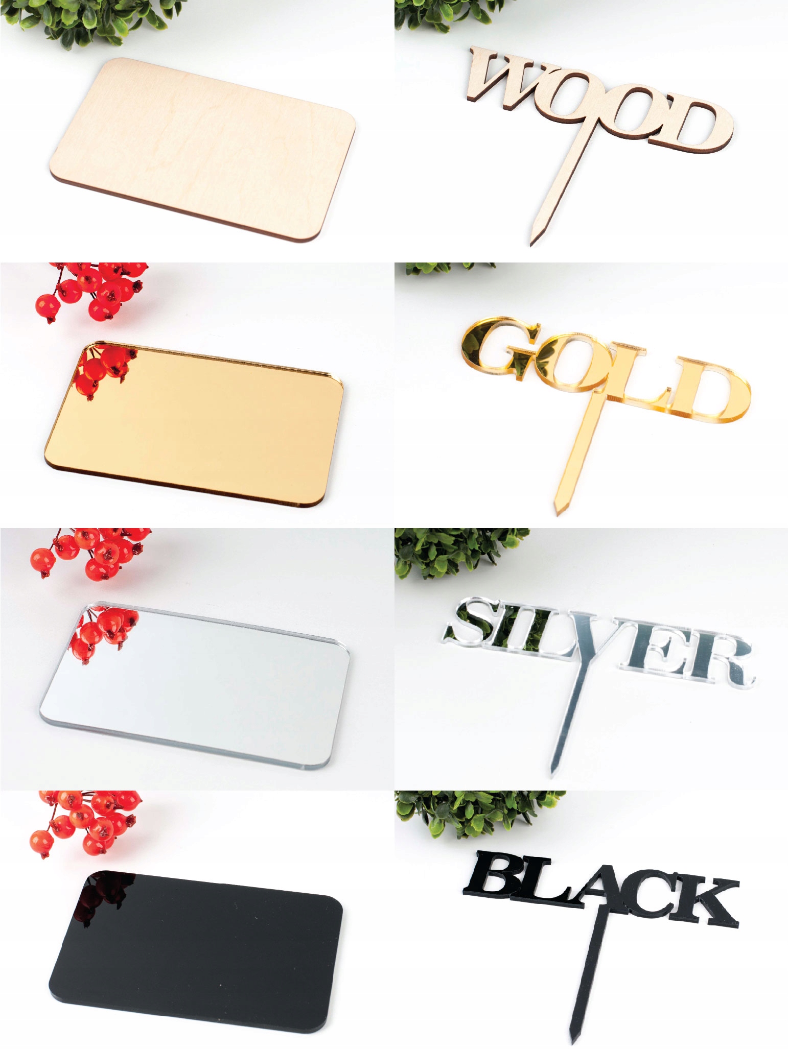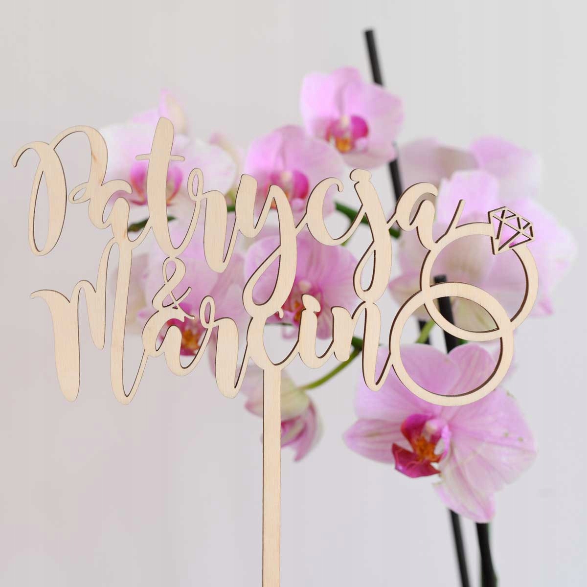 Остаточний зовнішній вигляд і розміри топпера залежать від використовуваних назв. Розташування роз’єму «&» та кілець може відрізнятися від зображеного на фотографіях залежно від використаних імен.