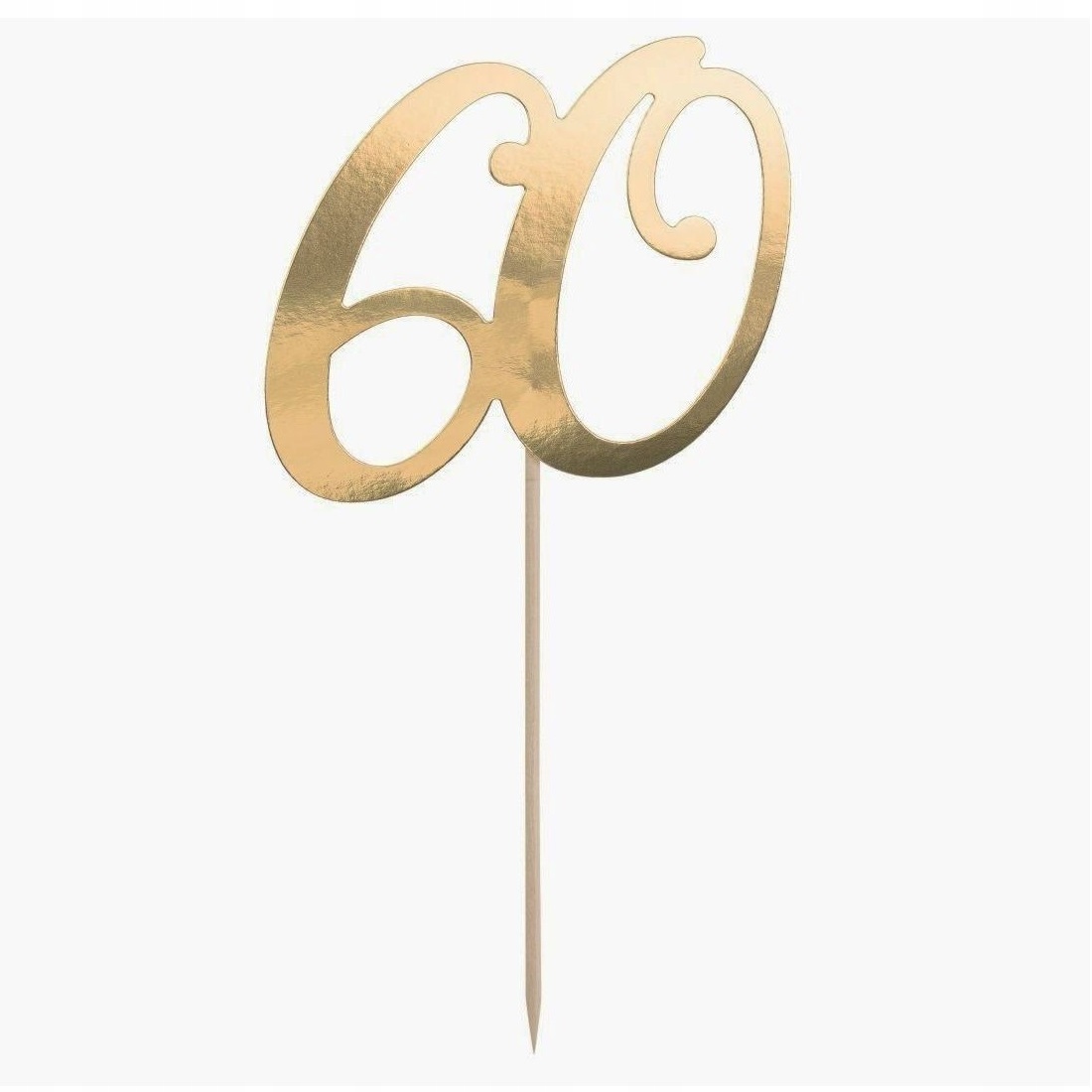 Подарований торт до дня народження з цифрою 60 - це виготовлена з високоякісного паперу дзеркального золотистого кольору. За допомогою гострих дерев’яних паличок гаджет легко встромити в будь-яку випічку та розташувати стабільно.