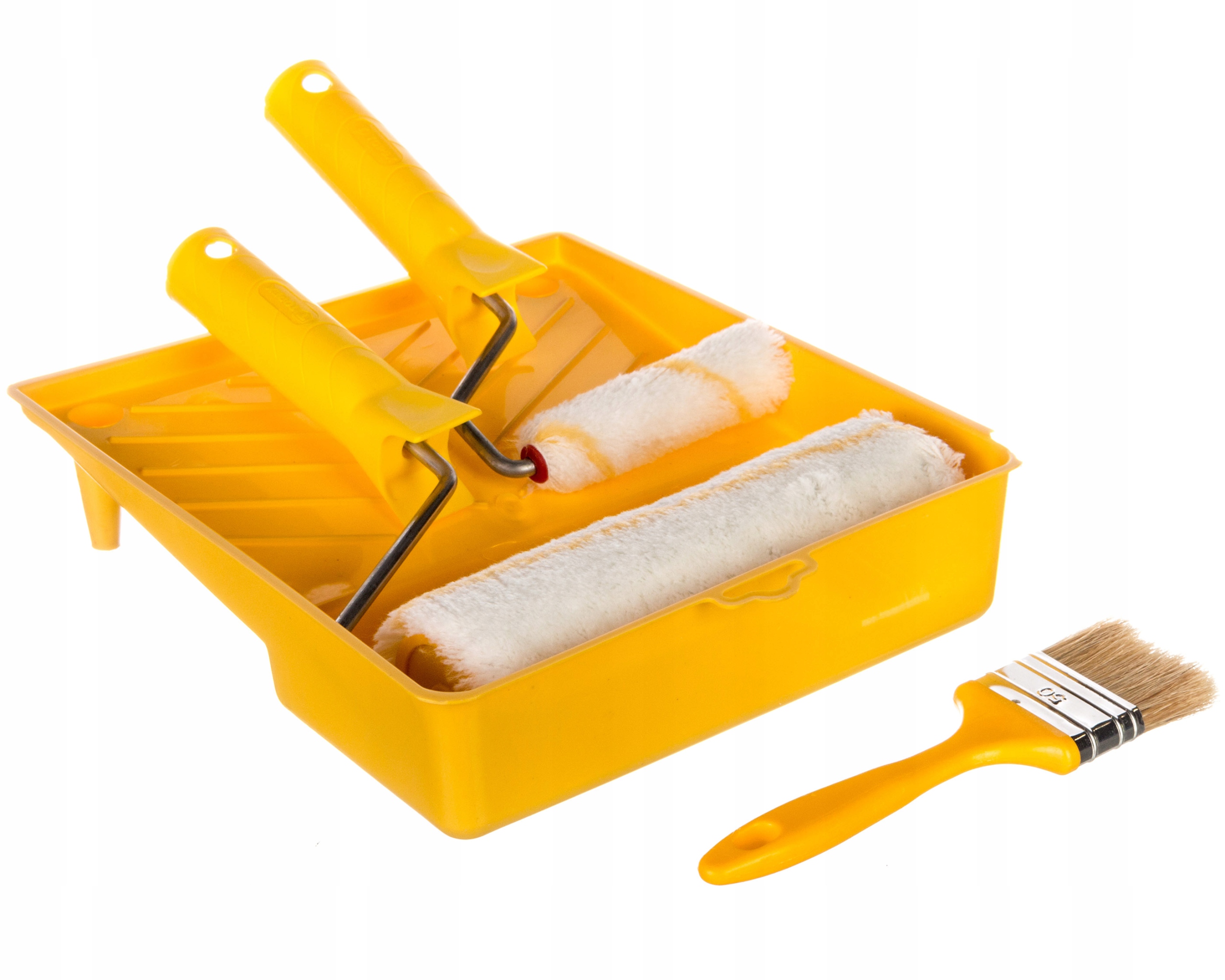 Набір для малювання для малювання емульсійними фарбами. Він складається з 4 елементів, таких як лоток 24 х 32 см, емульсійний валик 18 см діаметром 48 мм, емульсійний валик 10 см і емульсійна кисть 2. Набір для фарбування TOPEX дозволить виконати дрібний ремонт у квартирі чи будинку. Бренд TOPEX орієнтований на любителів DIY.
