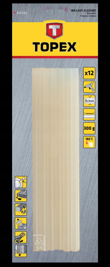 TOPEX КЛЕЙКИЙ КАРТРИДЖ ДЛЯ ПІСТОЛОТА 12шт 11х250мм