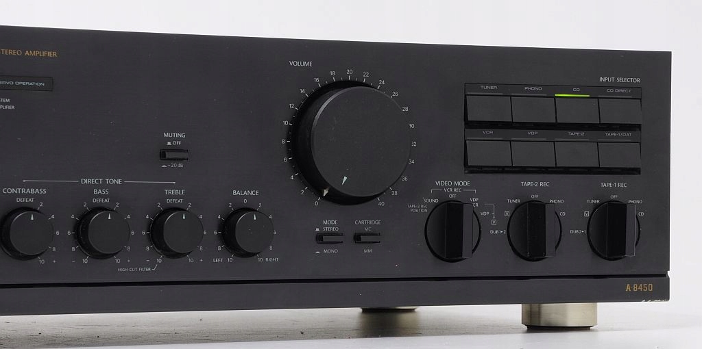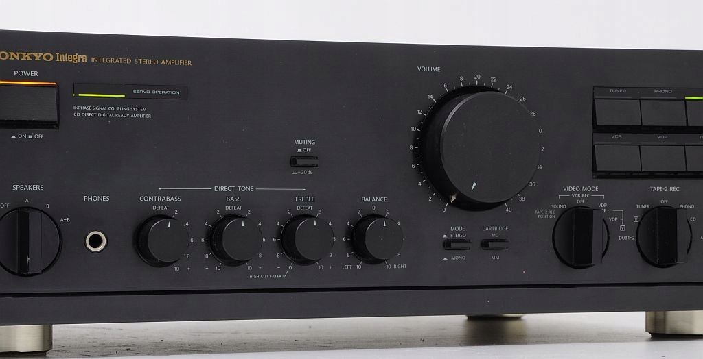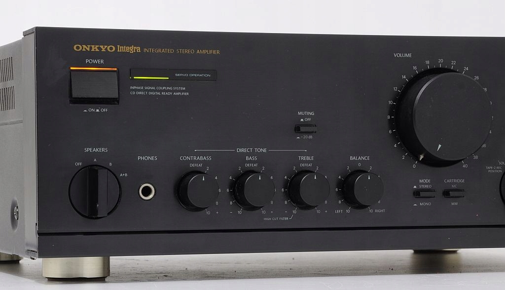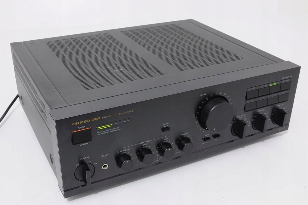 Еталонний підсилювач вищого класу Onkyo Integra A-8450. Перше, що впадає в око, це бездоганність виготовлення - точно підібрані комплектуючі, все зроблено з воістину педантичною увагою до деталей, що підтверджують відгуки користувачів на тематичних інтернет-форумах. Це обладнання японського виробництва, що само по собі говорить про пристрій добре. Підтвердженням надійності його виготовлення є значна вага – приблизно 12,5 кг (!). Ця модель є однією з флагманських (високобюджетних) розробок. Аудіофільська якість виготовлення, підсилювачі потужності вважаються одними з найкращих у світі. Потенціометри ALPS, величезний трансформатор! Зовнішній вигляд - страхітливий - чистота форм, простота і класична обробка. Стільки про зовнішній вигляд і якість виготовлення, які є передчуттям його звуку. Підсилювач має дуже корисну функцію CD DIRECT - звук тече прямо від джерела до підсилювачів потужності - немає непотрібних фільтрів, потенціометрів, а отже, неминучих спотворень - якість звуку CD приголомшлива. Попередній підсилювач має стандартні елементи керування - гучність, низькі частоти, високі частоти, функція відключення звуку -20 дБ, перемикач режимів моно/стерео. Обладнання має звуковий попередній підсилювач, сумісний з картриджами MM і MC. Додатковою унікальною функцією є додаткове керування басами CONTRABAS. Кожен динамік звучатиме як ніколи...