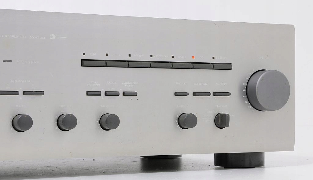 Звичайно, у нас є багато обладнання. Ви можете підключити програвач (підтримуються картриджі як ММ, так і МС), три джерела лінійного рівня і цілих три магнітофони. AX-730 також має вихід попереднього підсилювача та вхід підсилювача потужності. Зазвичай вони підключаються за допомогою перемички, що входить до комплекту, але можна використовувати кожну частину окремо. Підсилювач має два регулятори тембру. Контур також регулюється. Крім того, додаткове обладнання включає селектори виходу динаміка, вихід на навушники, регулятор балансу каналів, вибір джерел запису, фільтр дозвукового звуку та перемикач моно-стерео.