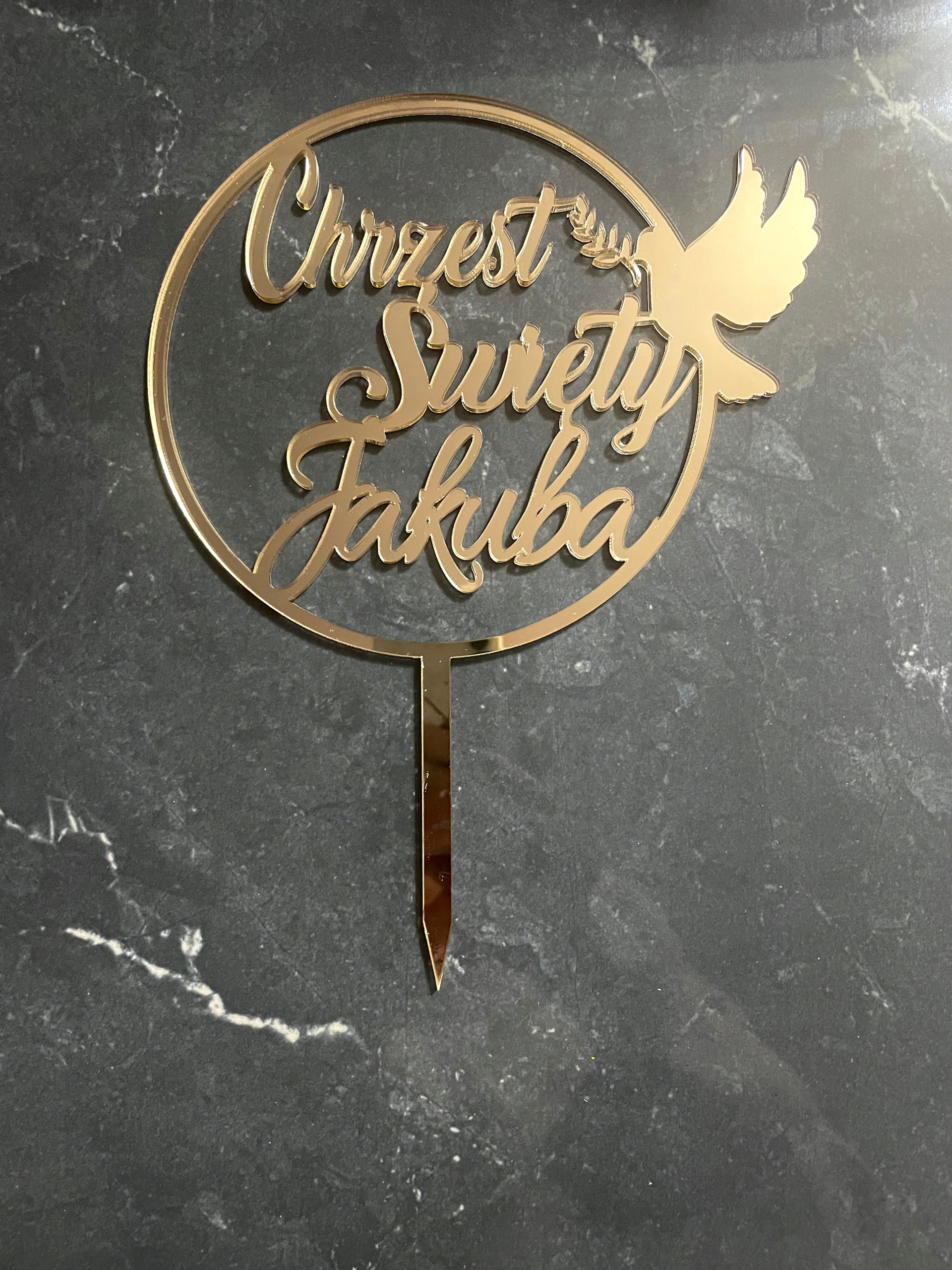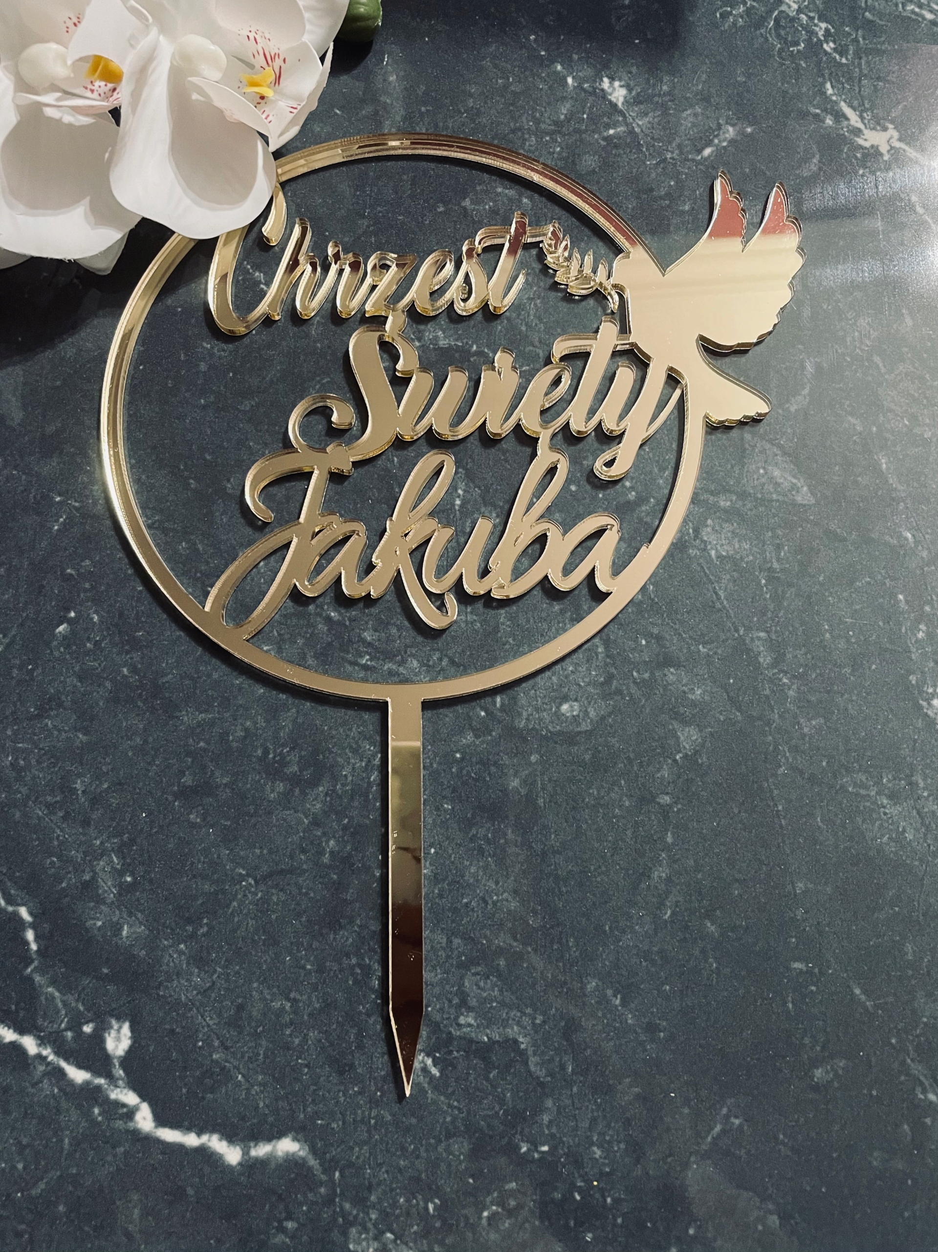 Topper Chrzest Swiety IMIE ZLOTE LUSTRO Gołąbek