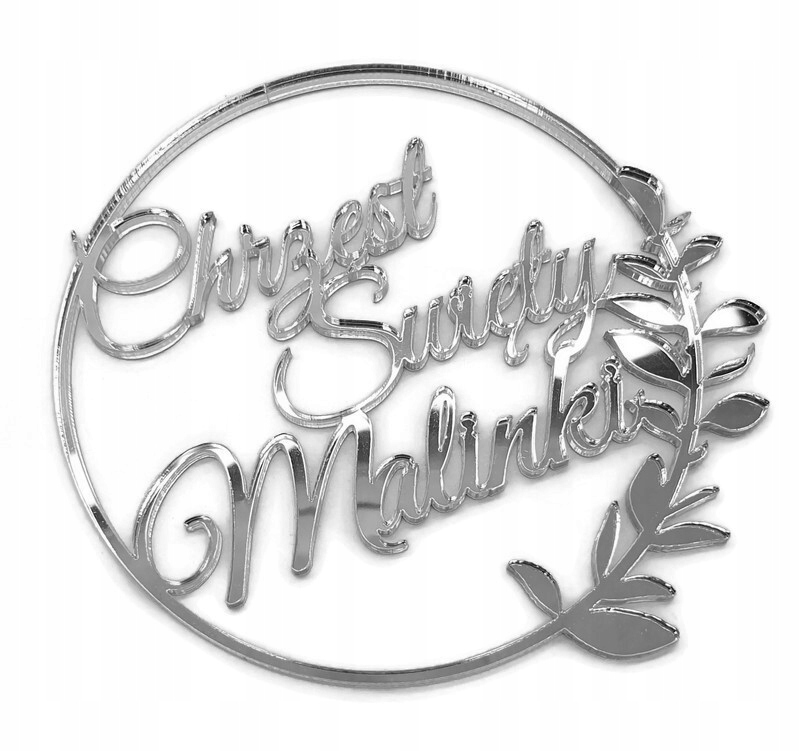 Топпер для боковини торта на хрещення ім. срібне дзеркало