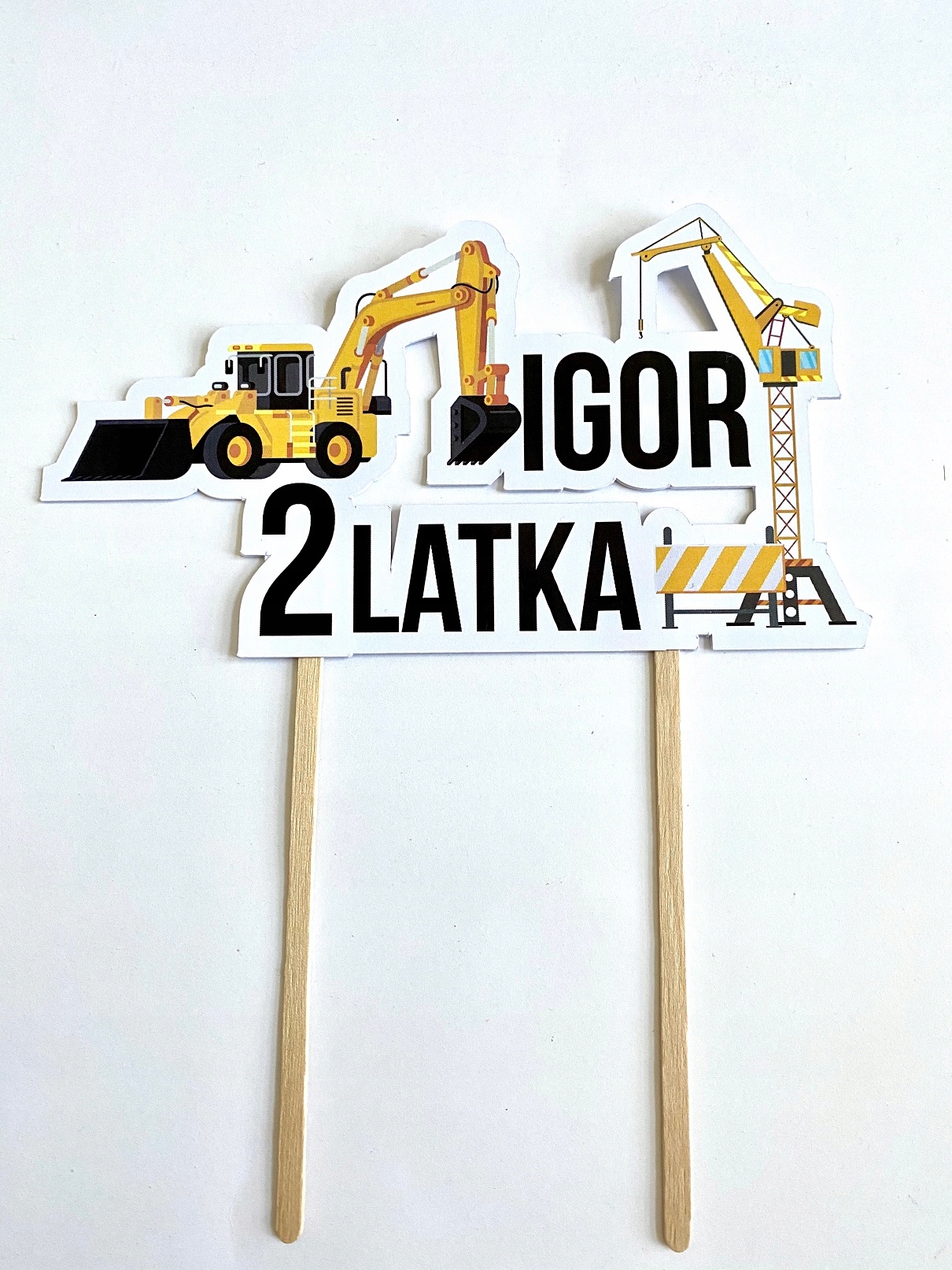 великий, персоналізований* з текстом та жовтим екскаватором.