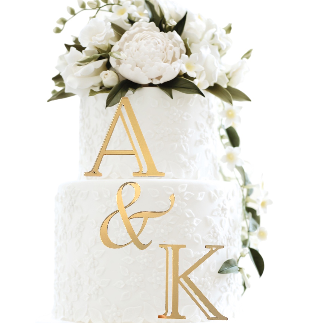 ТОППЕР ДЛЯ НАРЕЧЕНИХ ТА ГРУП, ІНІЦІАЛИ НА БІКІВ ТОРТА, СУЧАСНЕ ЗОЛОТЕ ДЗЕРКАЛО ПЛЕКСИ