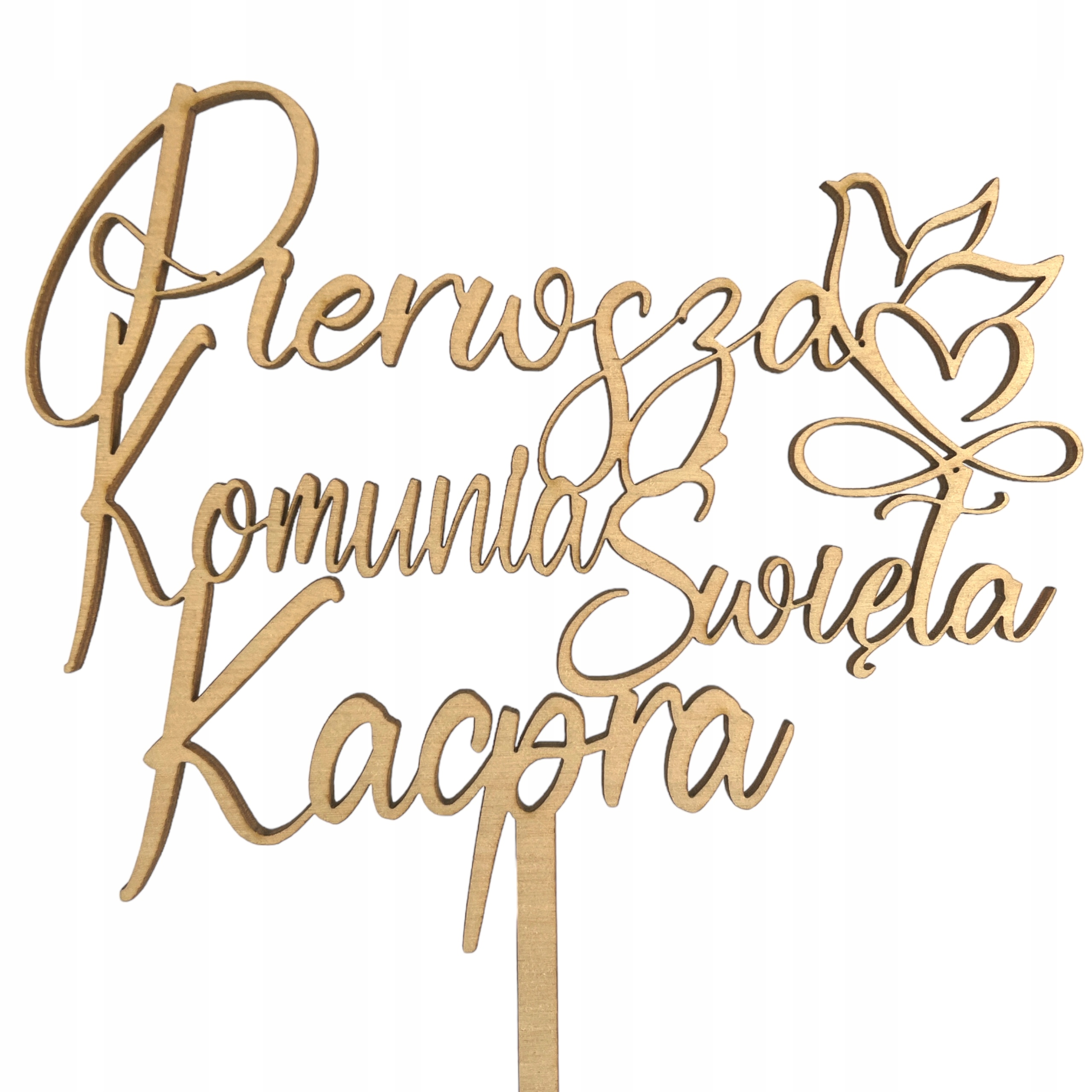Топпер для причастяного торта спочатку святого спілкування з дерев’яною назвою