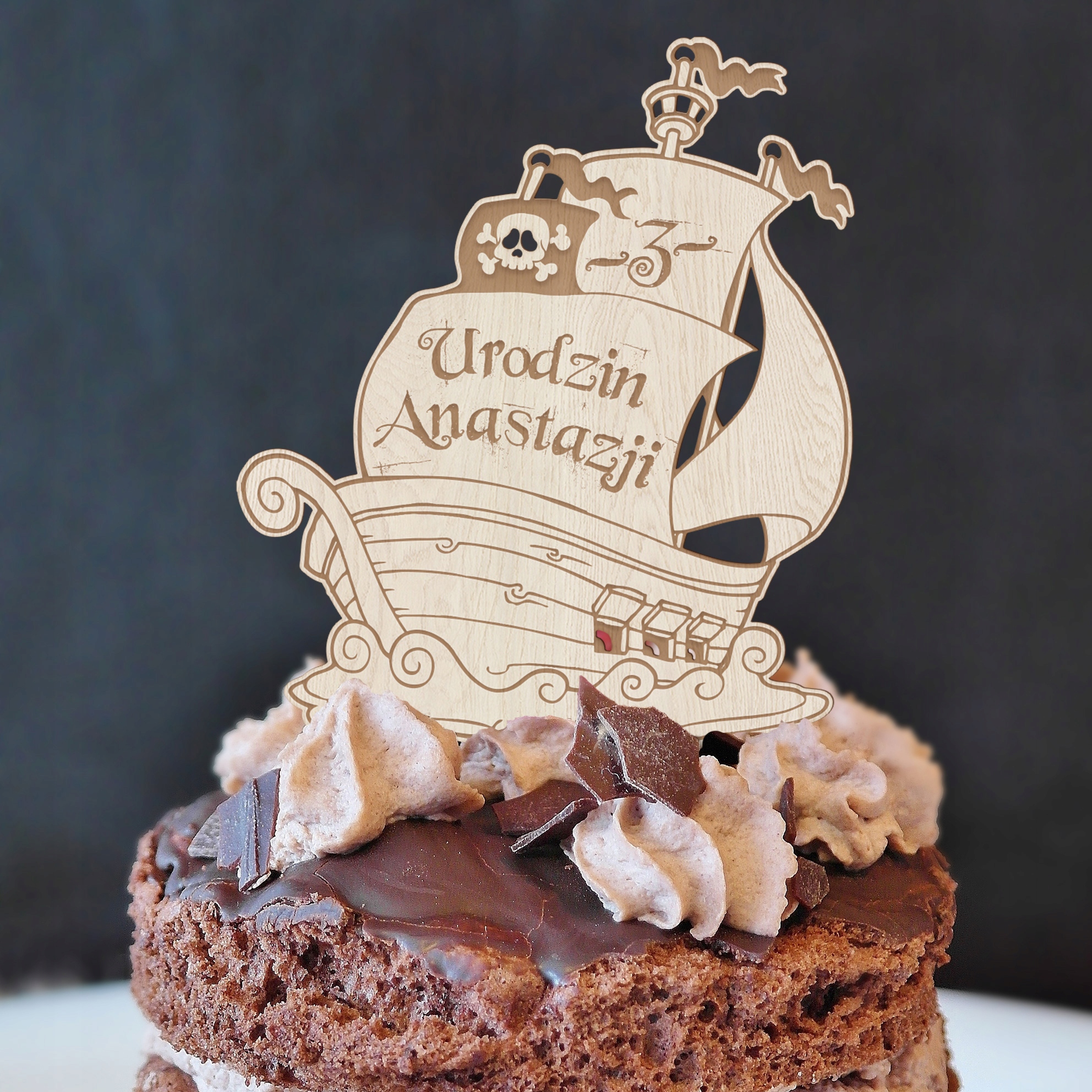 Ми пропонуємо унікальний топпер, розроблений нашим графічним дизайнером, унікальний топпер піратського корабля.