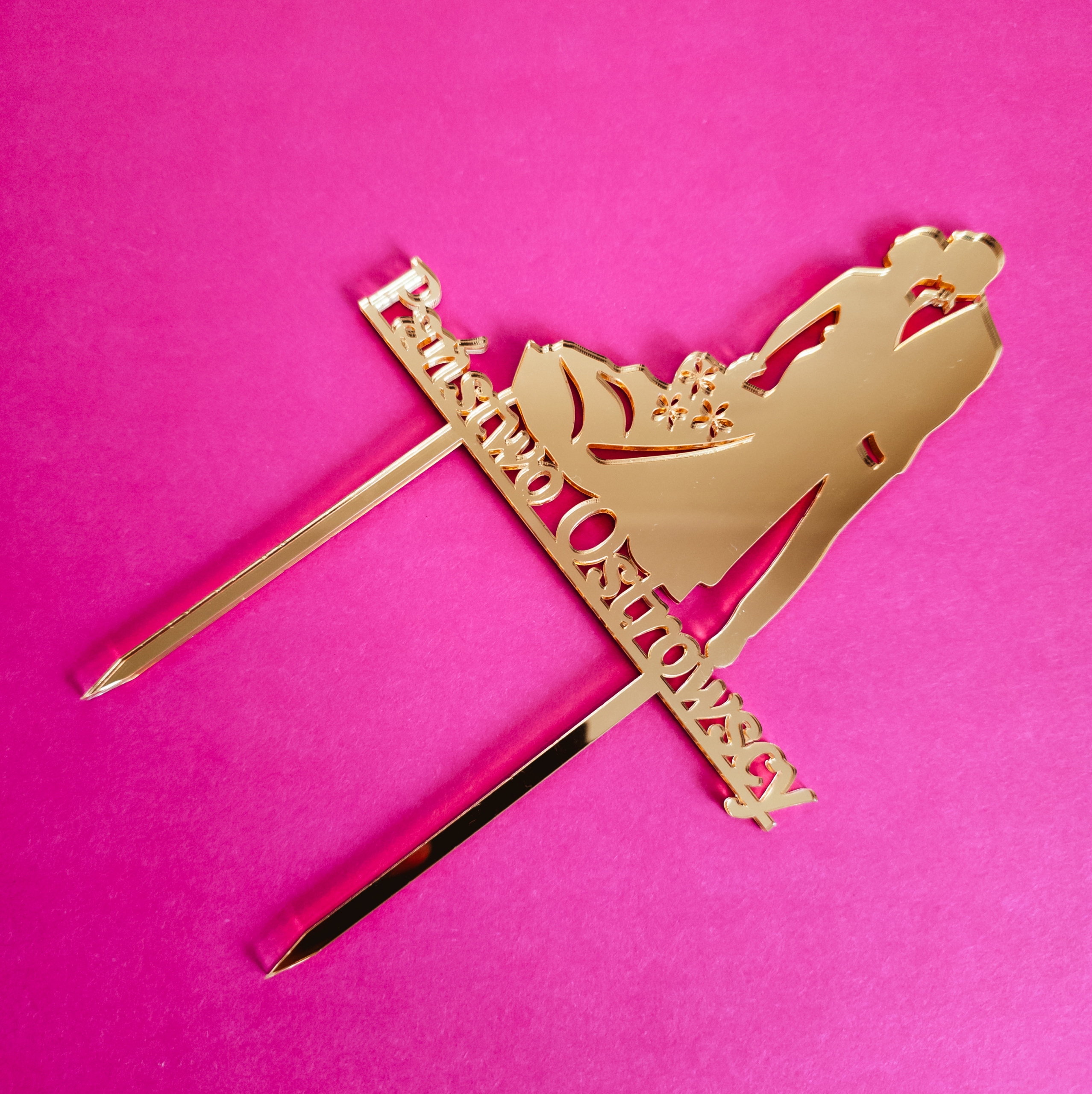 Якщо немає повідомлення щодо вмісту напису, ми надішлемо топпер за замовчуванням із написом: «Наречена і наречена» та символом: Наречений і наречена.