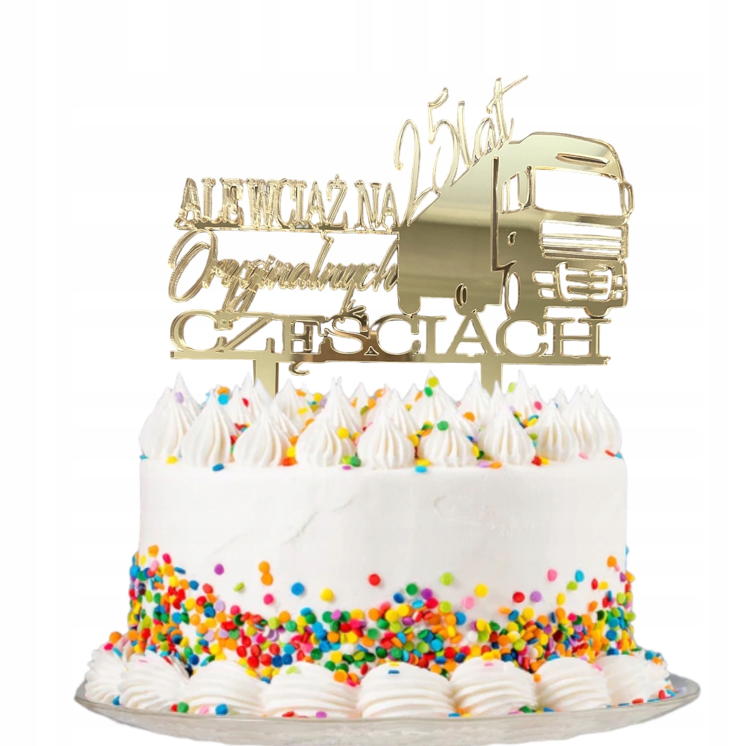 Топпер для торта вантажівка ВСЕ В ОРИГІНАЛІ ЗАПЧАСТИНАХ, золоте дзеркало