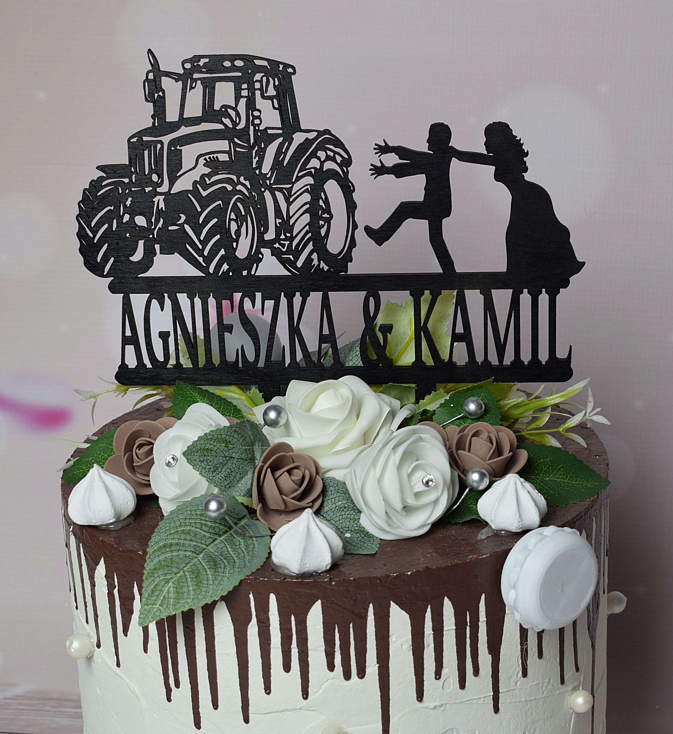 Персоналізований топпер для весільного торта - молода пара з трактором. P>