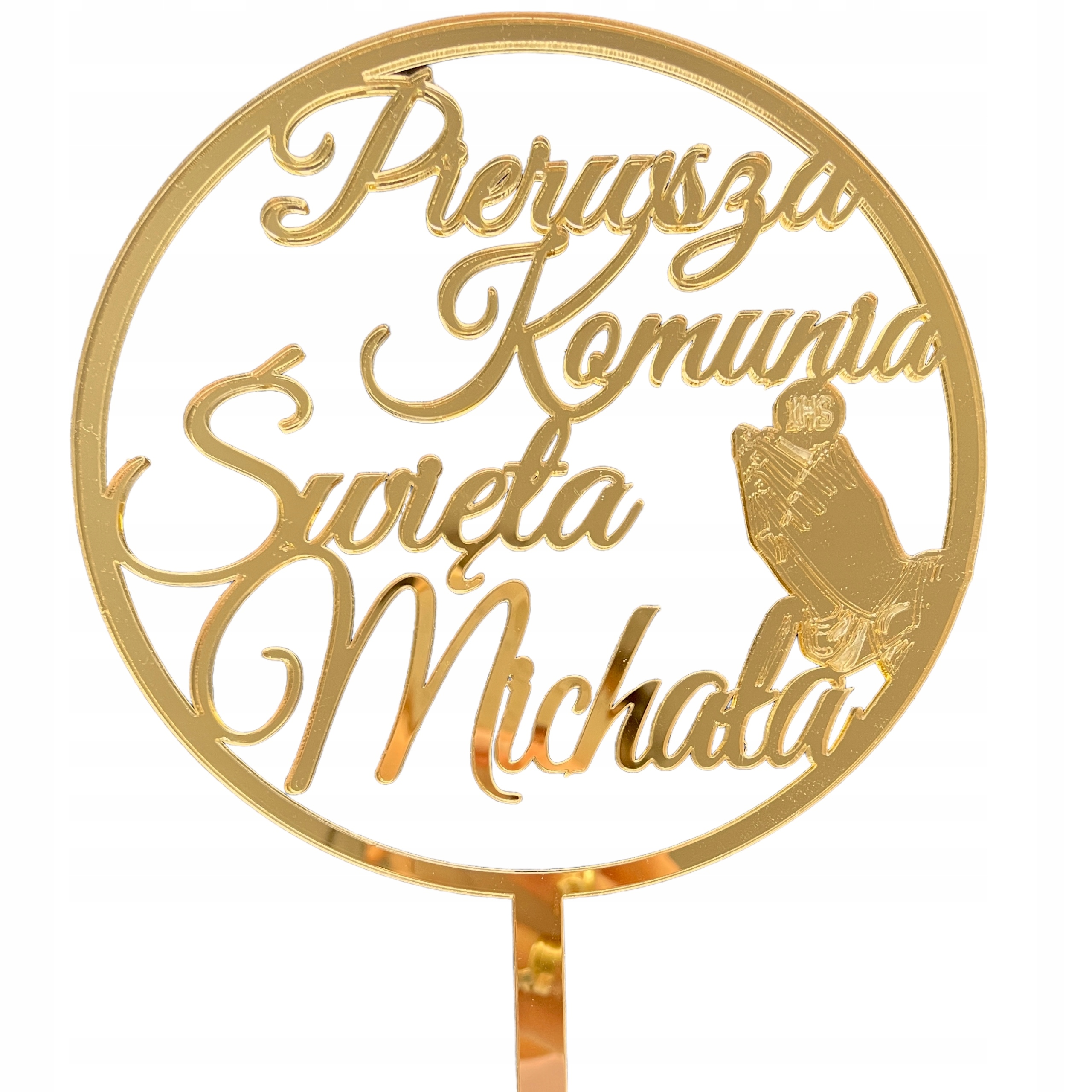 TOPPER IHS KOMUNIA ŚWIĘTA Z IMIENIEM ZŁOTE LUSTRO
