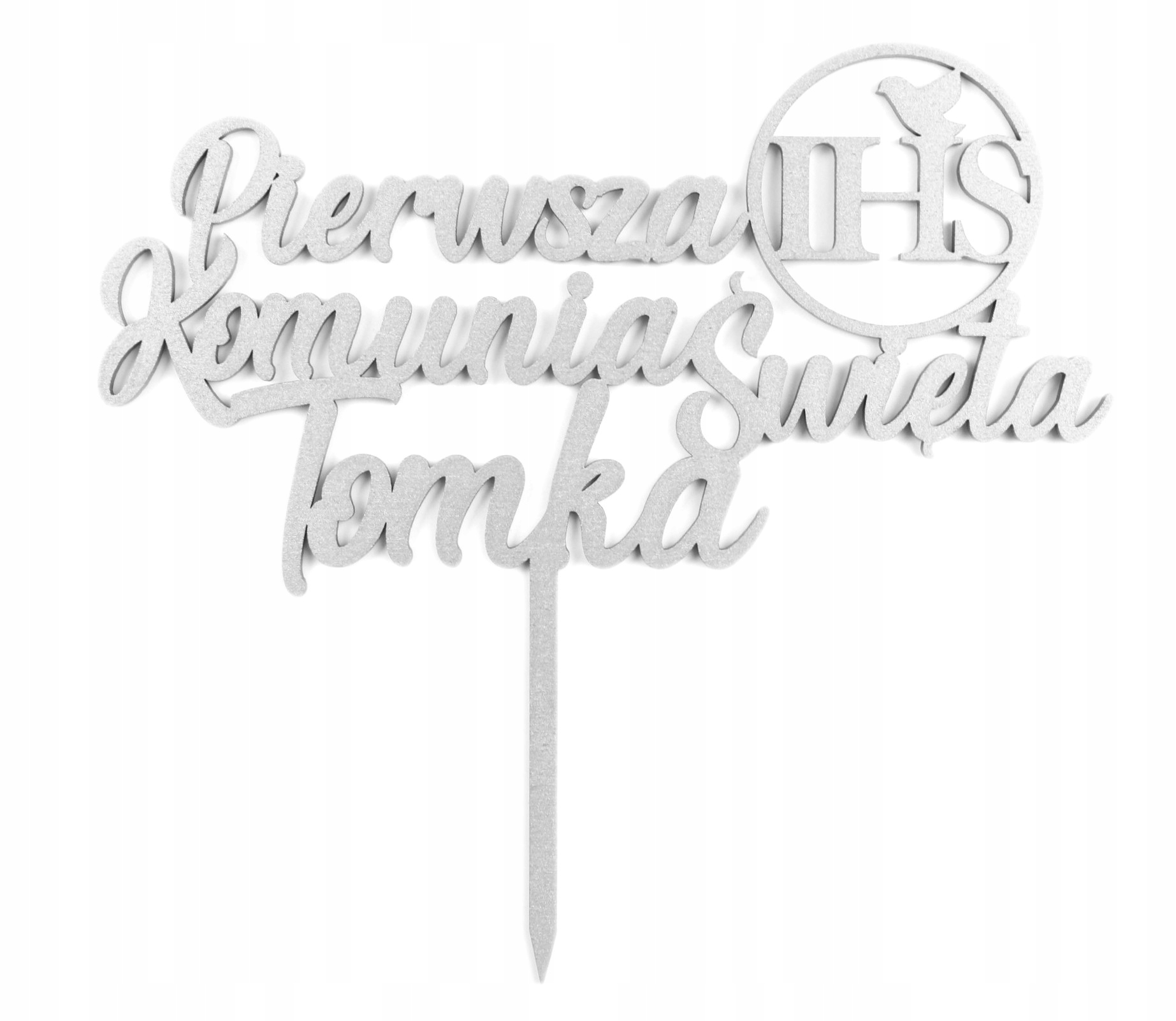 TOPPER KOMUNIJNY I Komunia Święta IHS Imię Srebrny