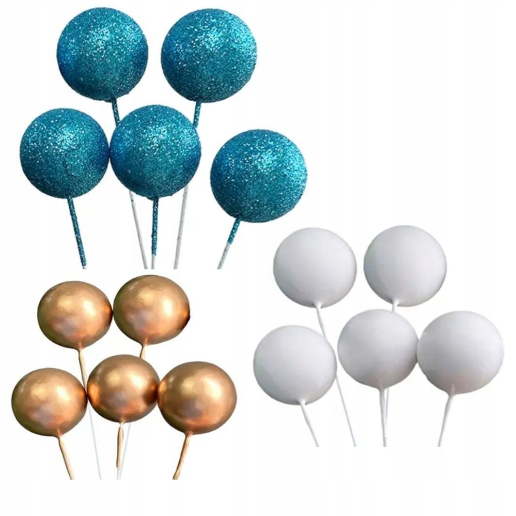 TOPPER KULE KULKI NA PIKU BIAŁE ZŁOTE NIEBIESKIE DEKORACJA NA TORT 788E