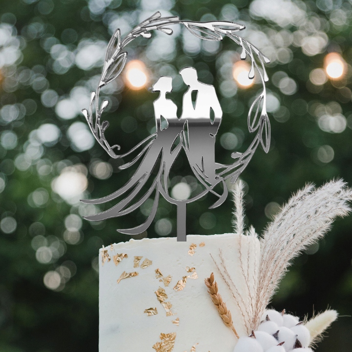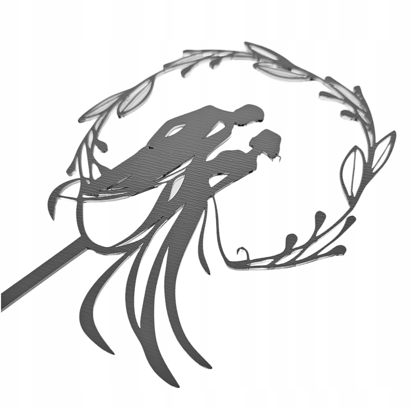 Topper ślubny MŁODA PARA figurka Pary Młodej na tort weselny srebrne lustro