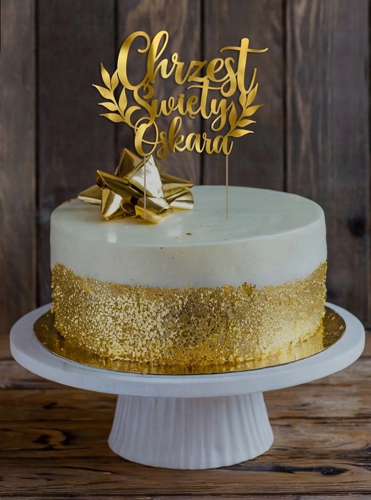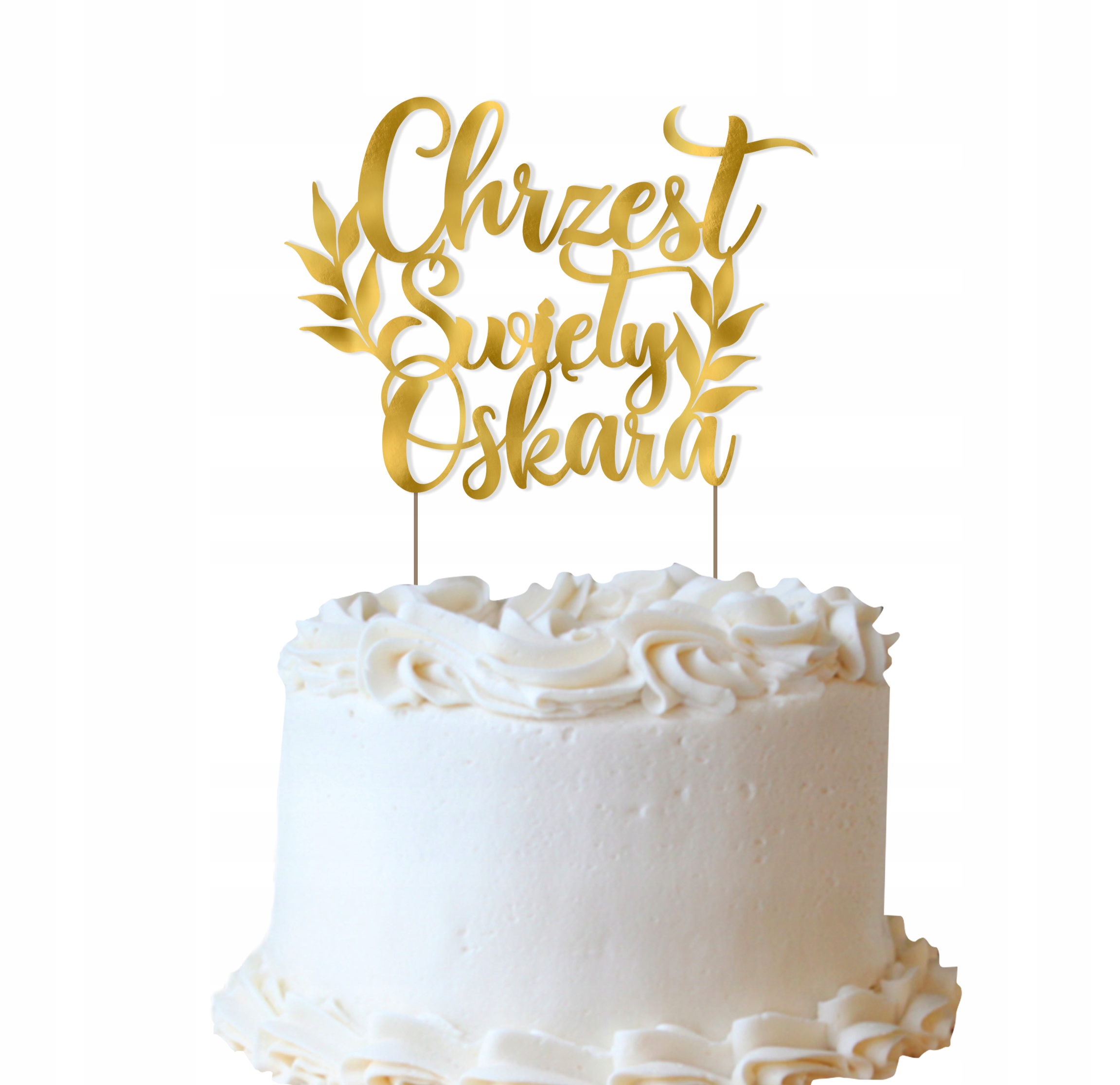ТОППЕР прикраса для торта ХРЕЩЕННЯ. Листя + ІМ'Я ЗОЛОТО