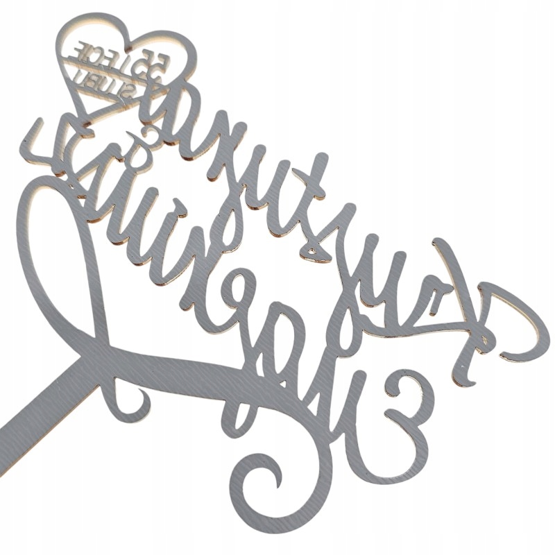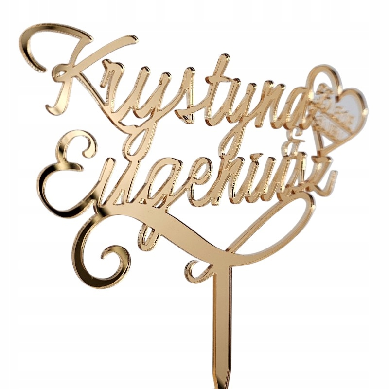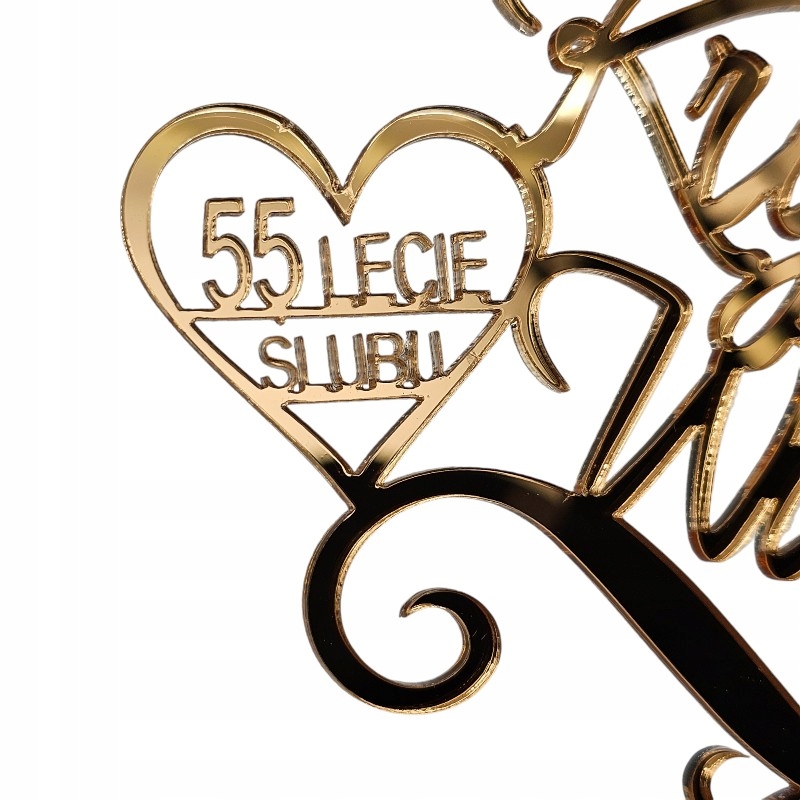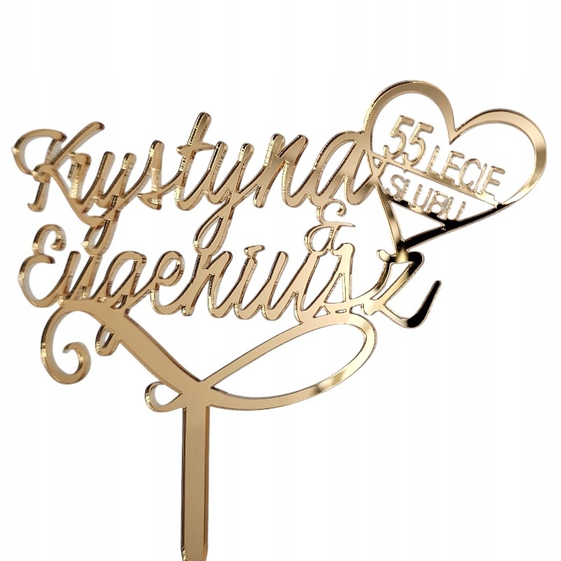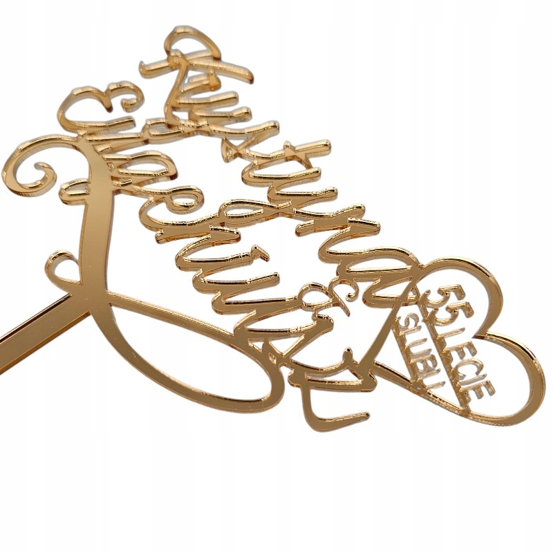 Topper Rocznica Ślubu imiona + liczba złoty toper na tort złote lustro
