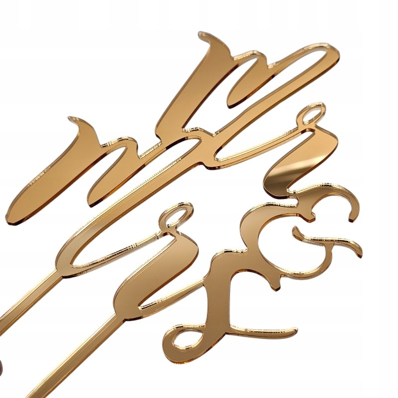Topper toper na tort złoty Mr & Mrs dekoracja na ślub wesele złote lustro