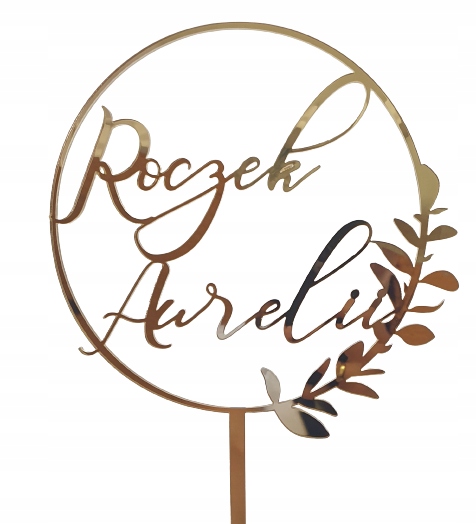 Топпер з написом РІК з назвою ІМ'Я золоте дзеркало