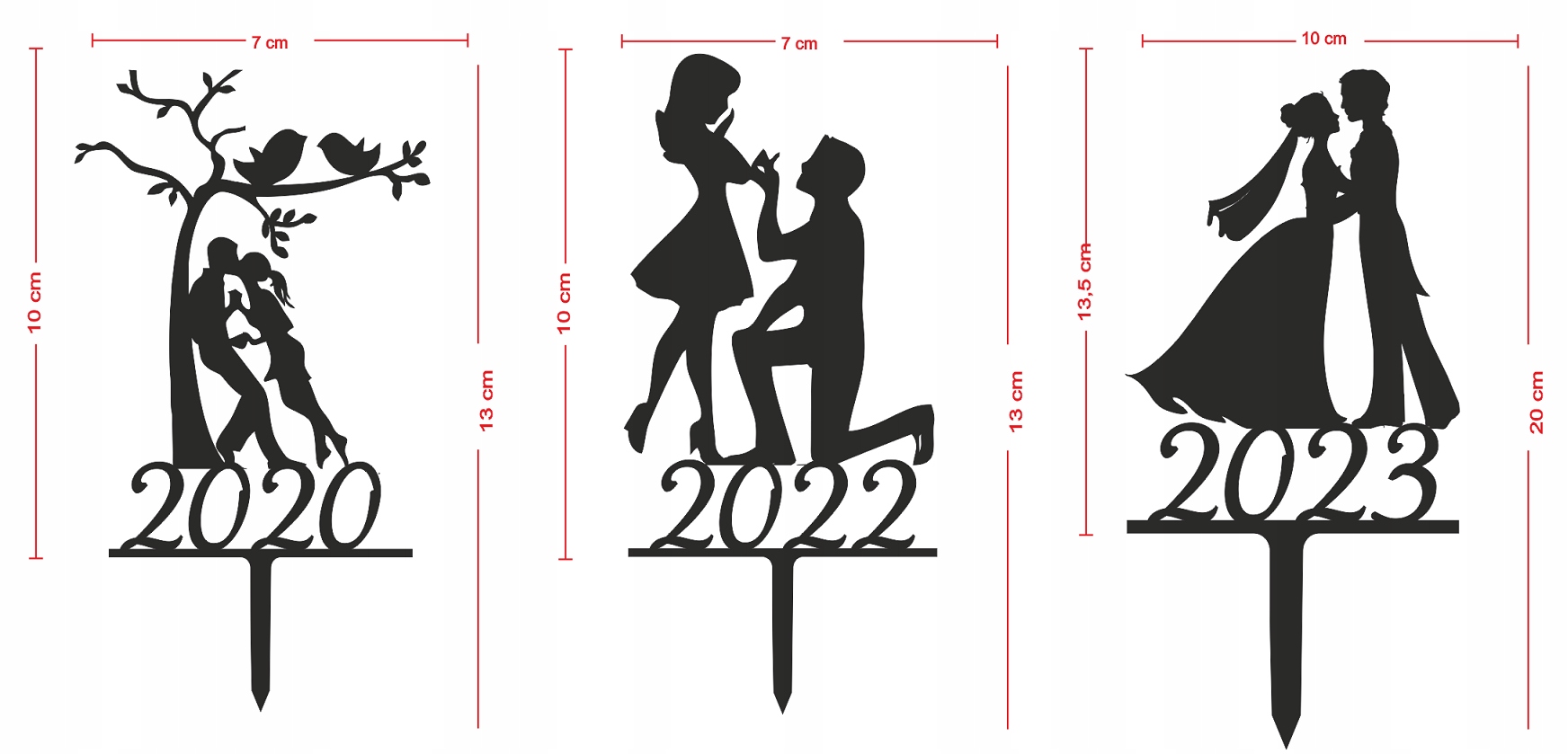 Додайте своєму весільному торту унікальний та особистий штрих за допомогою нашого набору з трьох топерів, кожен із яких є символічною фігуркою пари у важливі моменти вашого кохання, увічненими датами. Це не лише приємна для ока прикраса, але й унікальний спосіб висвітлити ключові етапи ваших стосунків.