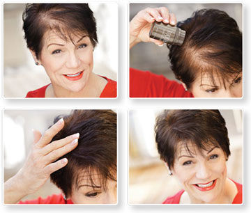 Можна використовувати препарат, тримаючи голову опущеною. Заповніть виділені ділянки голови. Скоро ви навчитеся використовувати препарат, дивлячись на своє відображення в дзеркалі або не дивлячись. Наносячи спереду, прикрийте лоб і очі рукою, щоб утримати спадаючі мікроволокна.