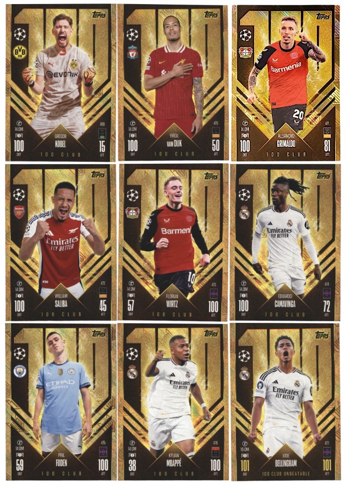 Topps Match Attax 2024-2025 100 Club 9 Cards Set