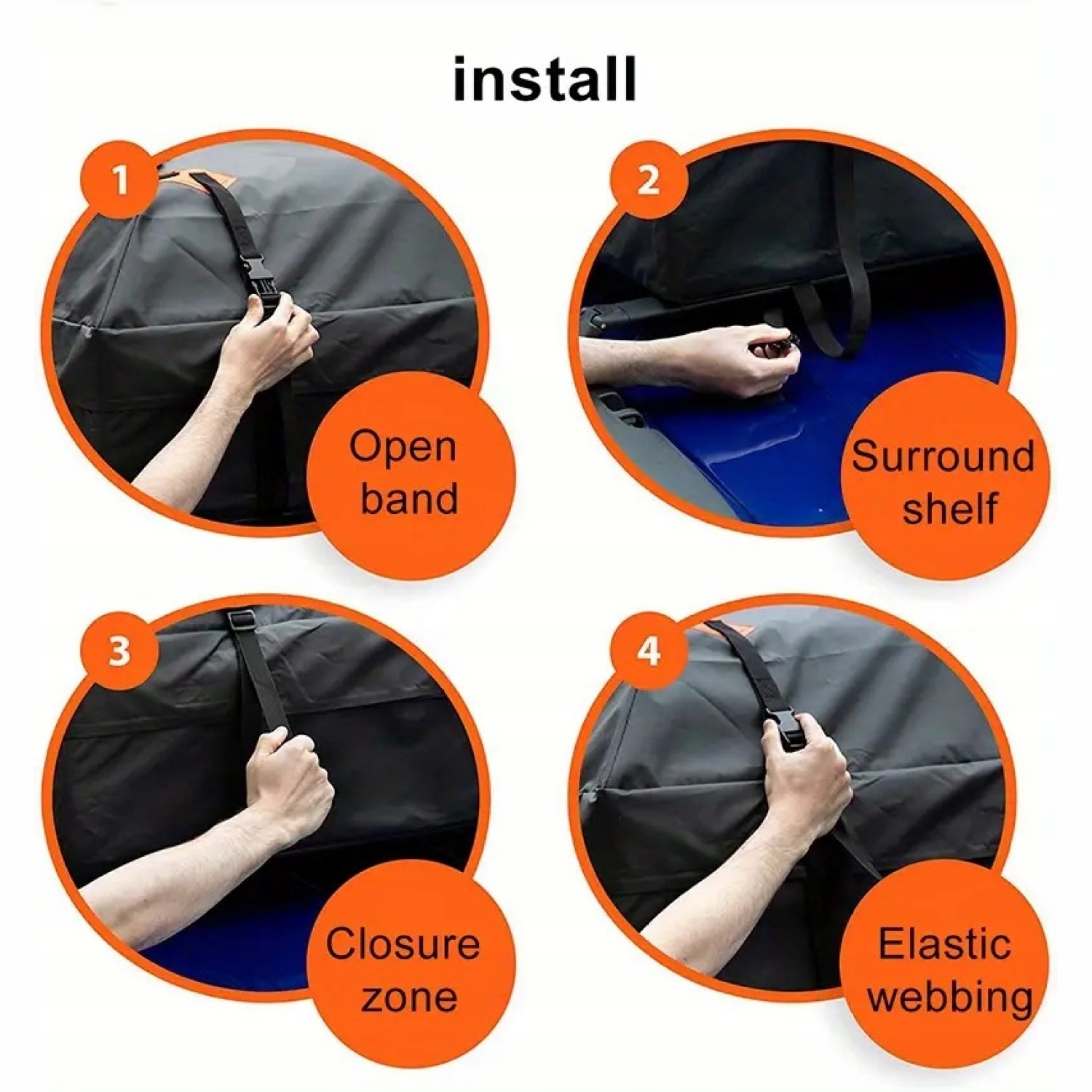 Універсальне використання: підходить для транспортних засобів з рейлінгами на даху, поперечиною або кошиками багажу, а також може використовуватися без багажної полиці. Ідеально підходить для подорожей, кемпінгу та пригод на природі.