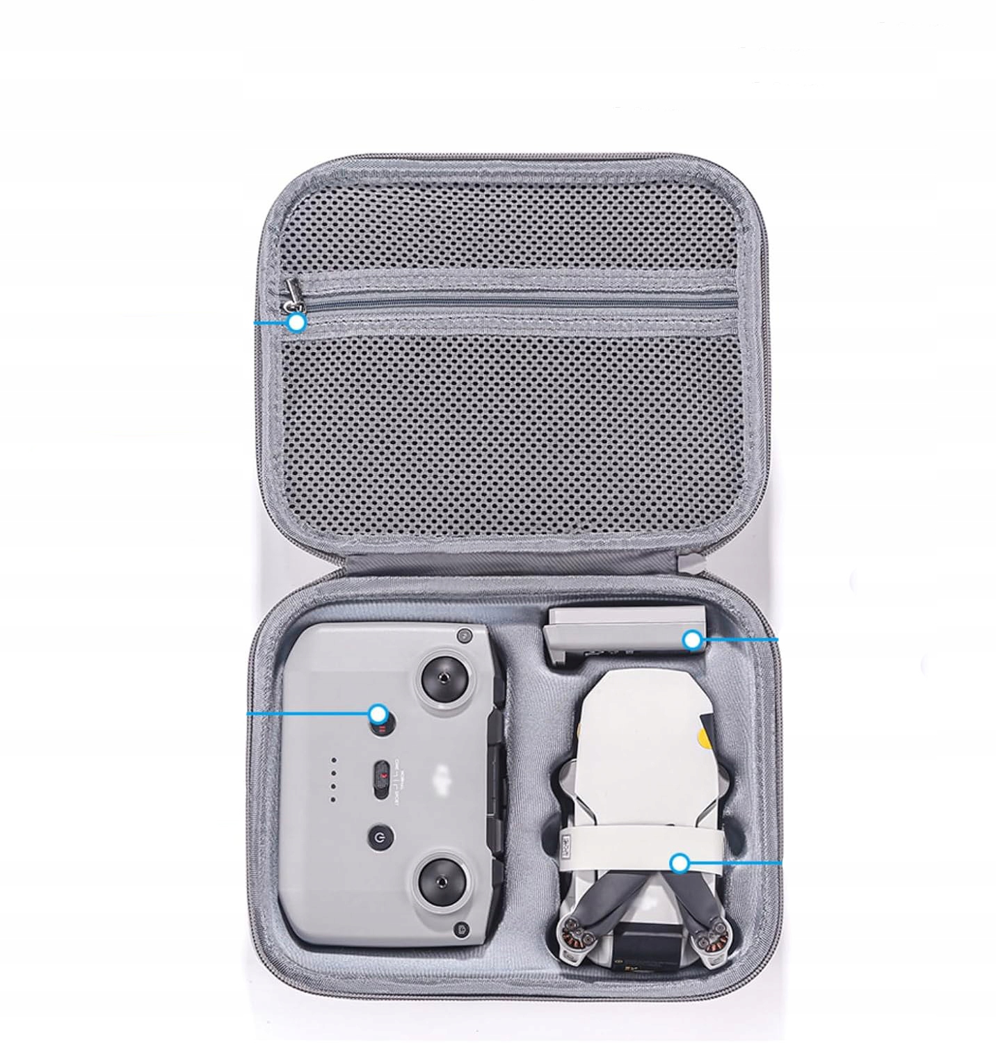 Спеціально розроблений для DJI Mavic Mini 2, ексклюзивний спеціальний простір, де можна зберігати міні-хост, батарею пульта дистанційного керування, кабель даних та інші популярні аксесуари;
