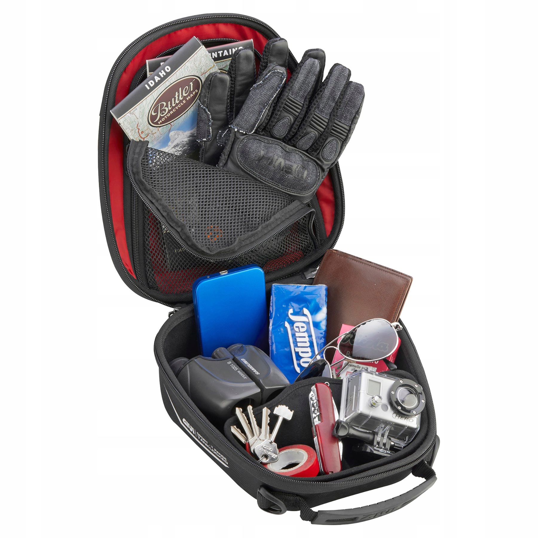 Завдяки універсальному дизайну сумка на бак GIVI сумісна з більшістю моделей мотоциклів, не завдаючи негативного впливу на бак і не стикаючись з кермом.