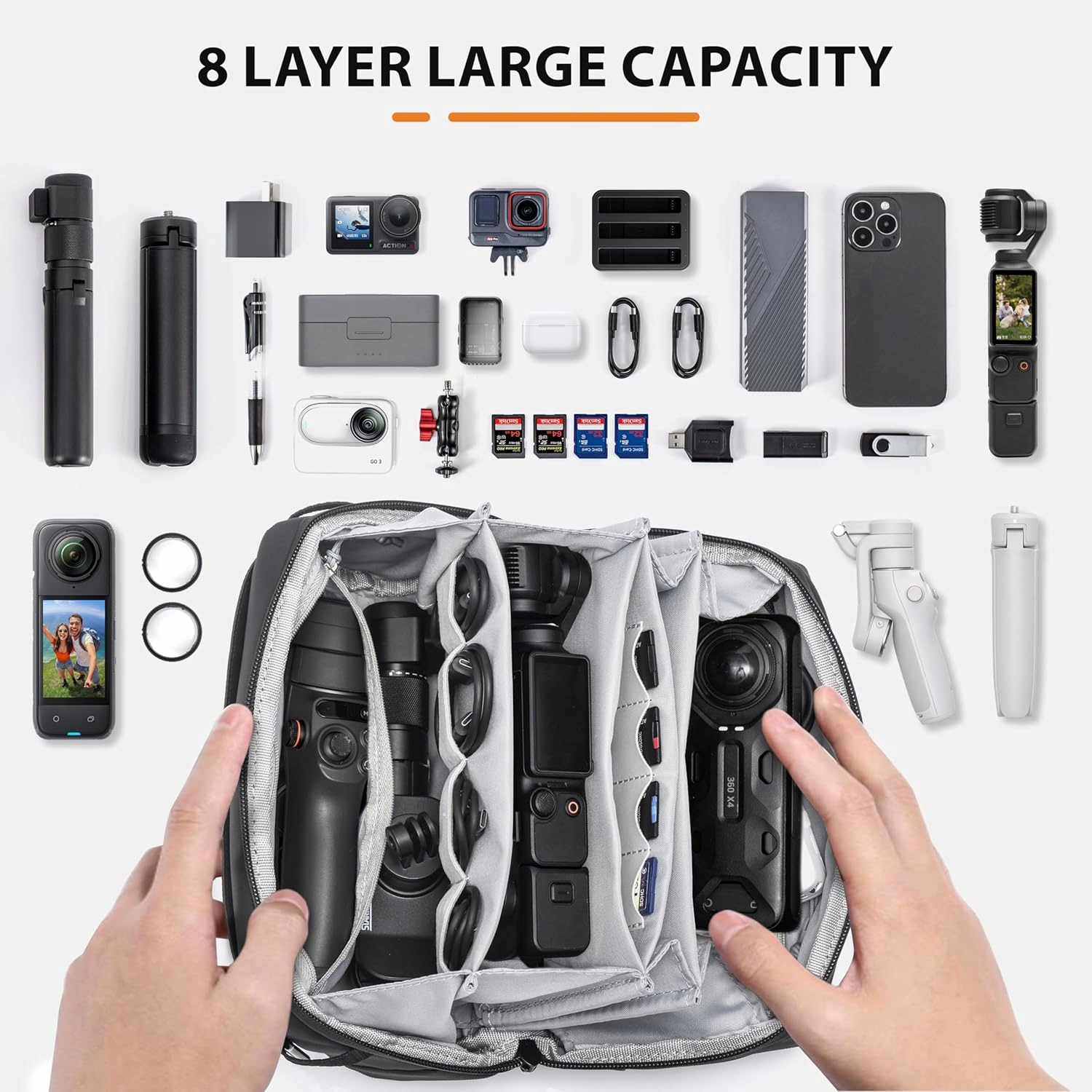 【Ідеальна сумісність】Кожне відділення сумки для перенесення Pocket 3 ретельно підібрано для конкретних моделей: DJI Osmo Pocket 3 / Osmo Mobile 6, Insta360 X4 X3, Insta360 Flow Pro, DJI Osmo Action 5 Pro, Action 4, Action 3 , Insta360 Ace Pro 2, Ace Pro, Ace, Gopro hero 13, 12, 11, 10, 9.