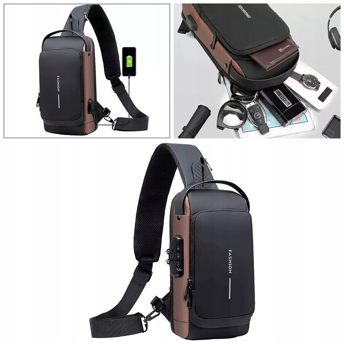 TORBA SASZETKA NERKA MĘSKA PLECAK NA RAMIĘ PLECAK ANTYKRADZIEŻOWY USB