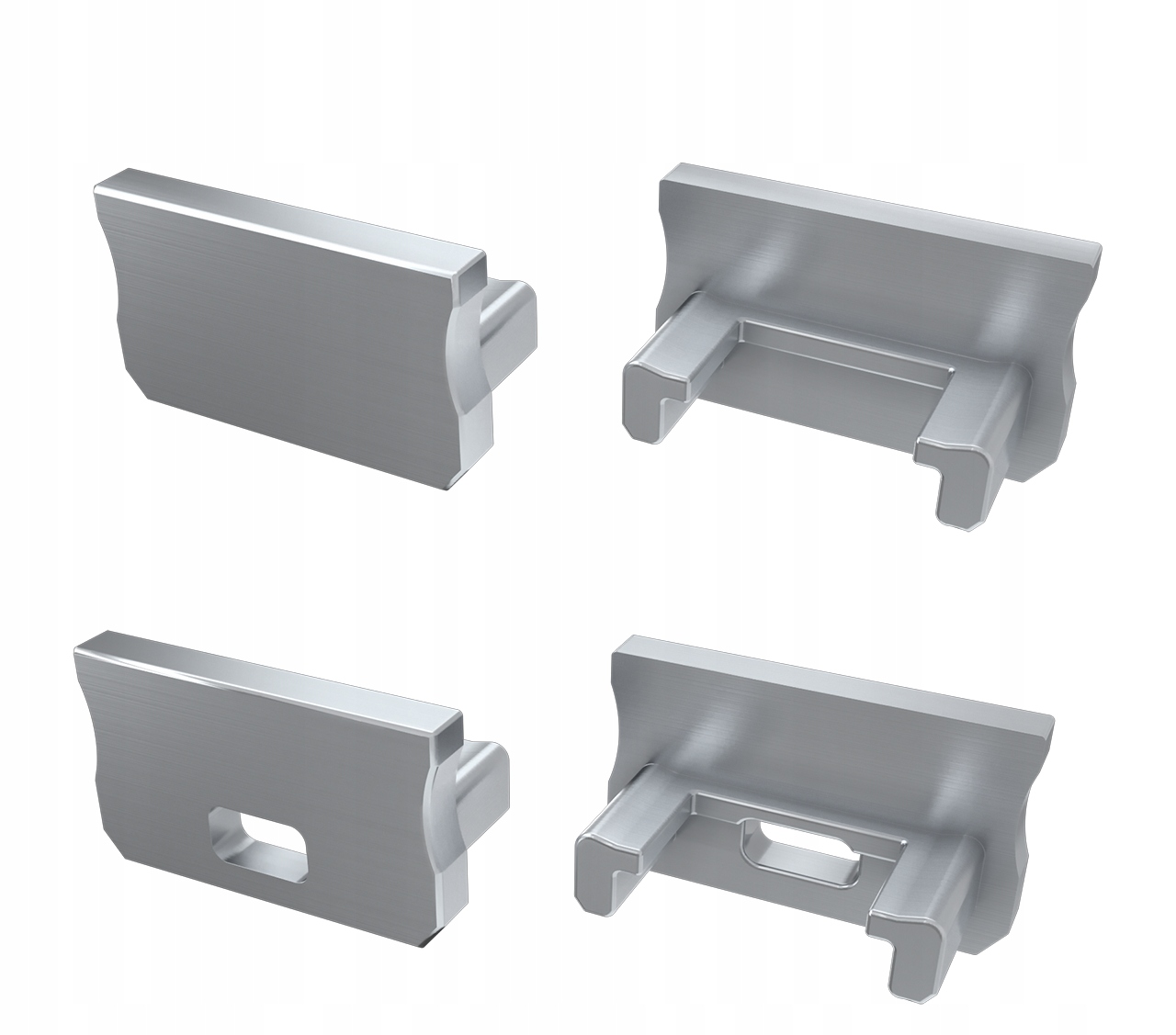 Доступний у чотирьох кольорах: сірий (для необроблених і срібних профілів), чорний, білий, нержавіюча сталь. Ковпачки випускаються в варіантах: без отвору і з отвором (для шнура живлення). На фото 5 показана висока торцева кришка для світлодіодного профілю типу А