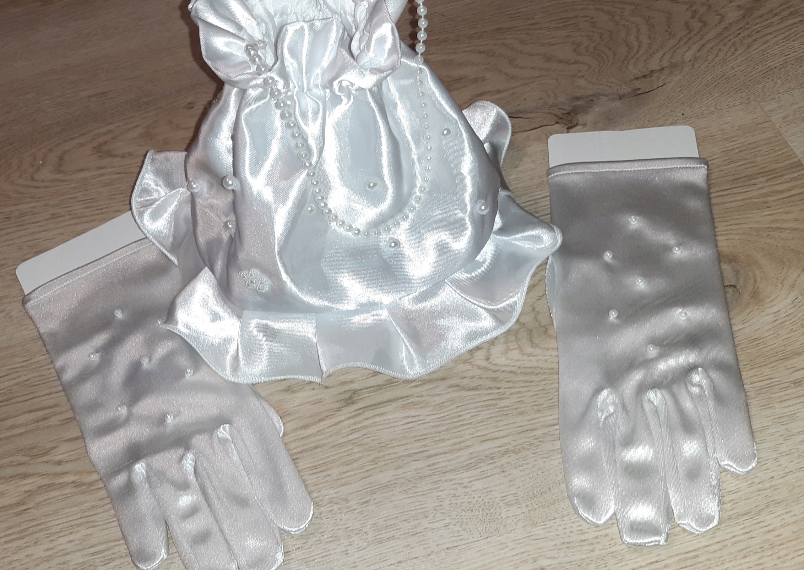 TOREBKA KOMUNIJNA BIAŁA Z PEREŁKAMI ORAZ REKAWICZKI
