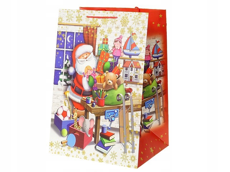 Torebka prezentowa MIKOŁAJ wzór ŚWIĘTA rozmiar XXL BIG szerokie dno TM87