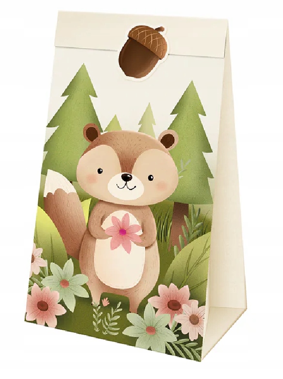 Torebki na cukierki słodycze zwierzątka Leśni przyjaciele urodziny 4 szt.