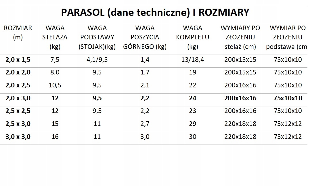 Ми виробляємо парасольки з іншими розмірами, наведеними в таблиці нижче (доступні на інших аукціонах).