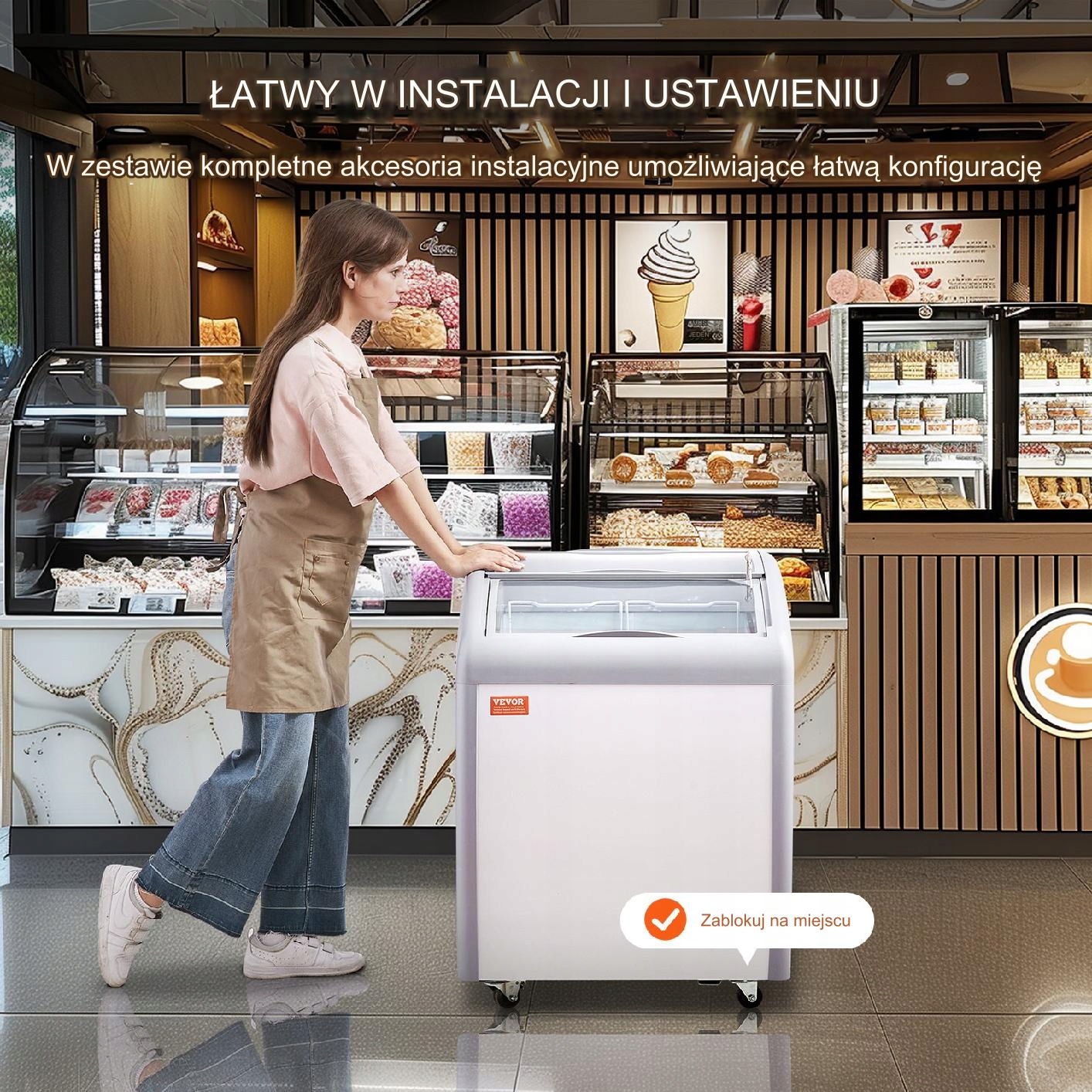 Кожна мобільна морозильна скриня зі скляною кришкою оснащена скляними дверцятами, які можна рухати в будь-якому напрямку, забезпечуючи зручний доступ до морозива. Для додаткової безпеки двері оснащені замками.