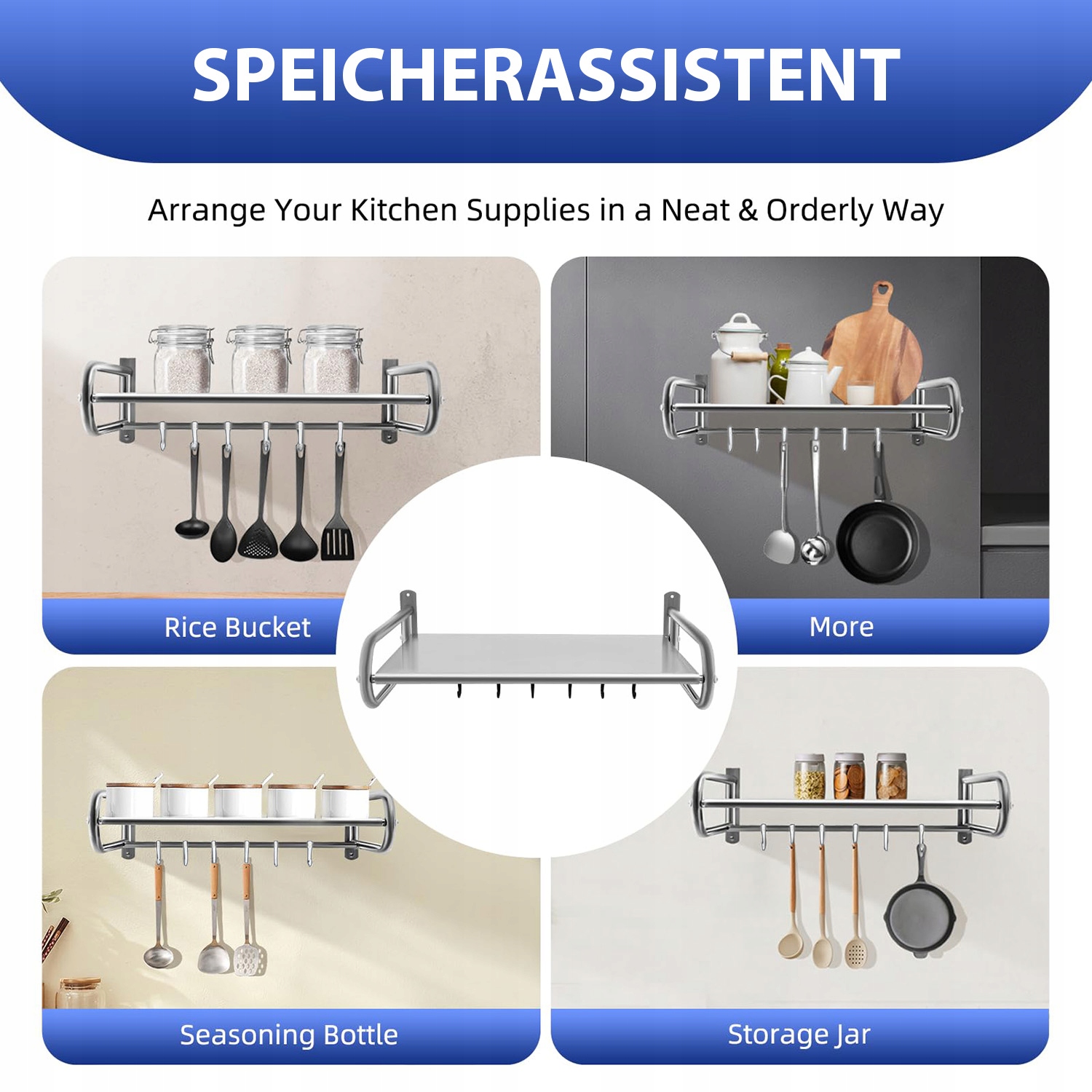 Збереження простору: суцільний верхній шар може бути використаний для розміщення мікрохвильової піч або духовки, і завдяки 5 гачків ви можете повісити кухонну посуд, наприклад, ножі, ложки тощо, щоб ваша кухня залишалася замовлена. Це найкращий вибір, коли мова йде про організатор для зберігання на кухні. Заощадження місця завдяки встановленню настінної полиці робить вашу кухню добре організованою та придатною для встановлення на кухнях та ресторанах.