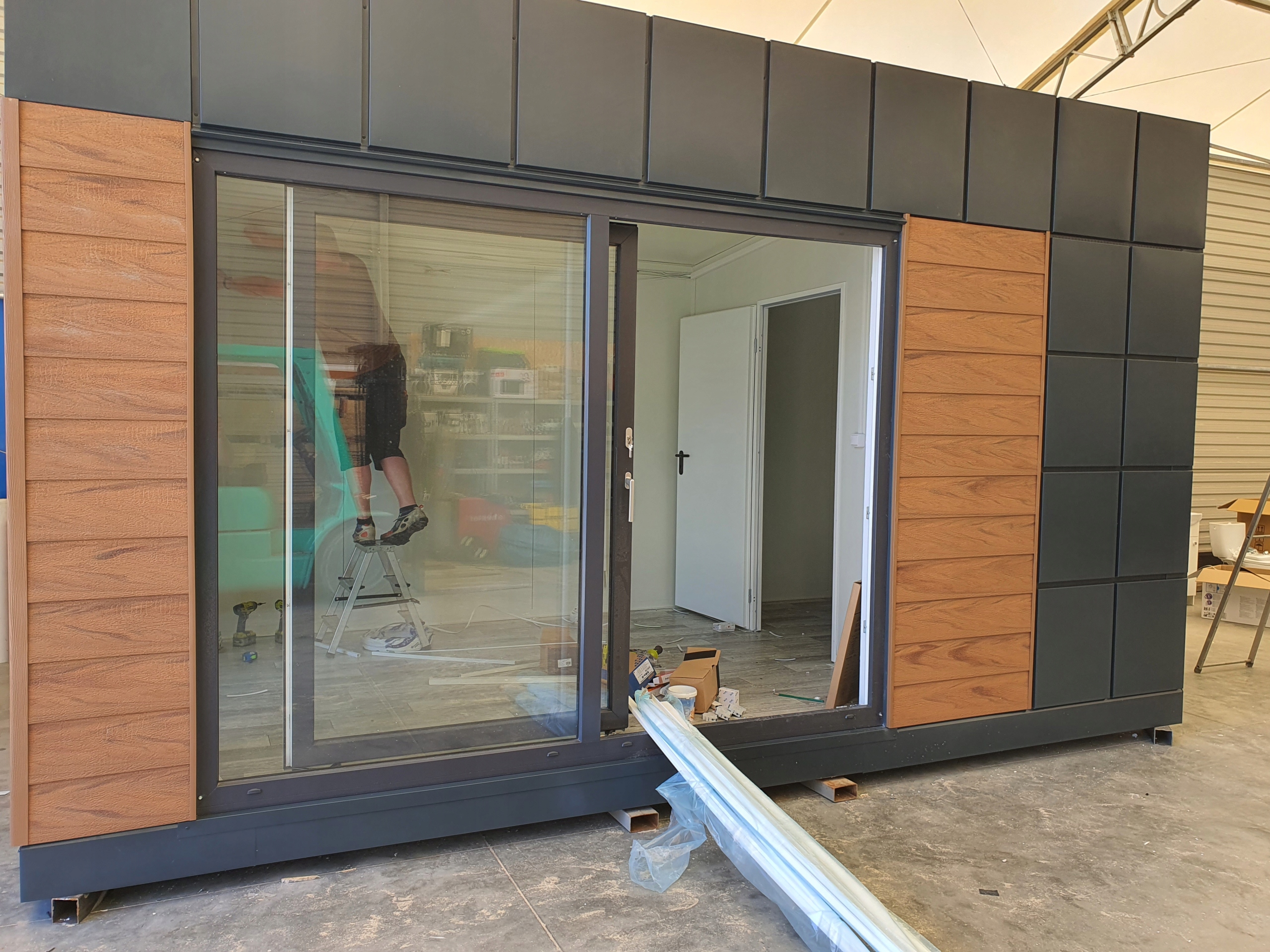 - Підлога: Сендвіч-панель з серцевиною з пінопласту товщиною 100 мм, теплопроникністю 0,38 Вт/м2 К, додатково укріплена OSB плитою та оздоблена ПВХ-вагонкою