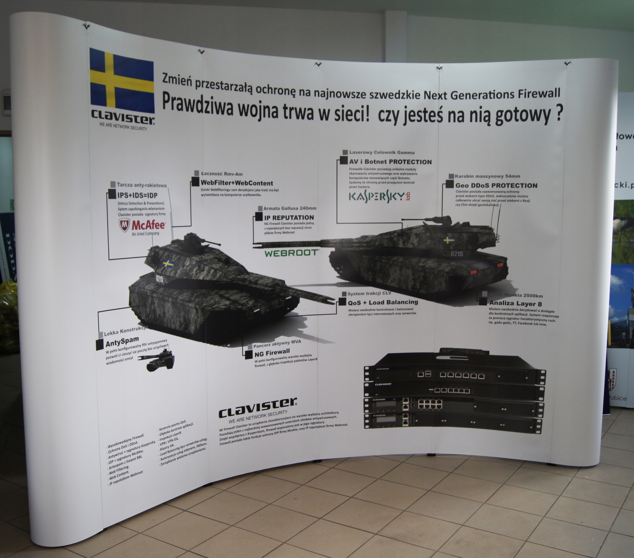 - пряма розбірна рекламна стіна шириною 290 сантиметрів і висотою 230 сантиметрів. Виготовляється з анодованого алюмінію (стійкого до корозії) і пластику.