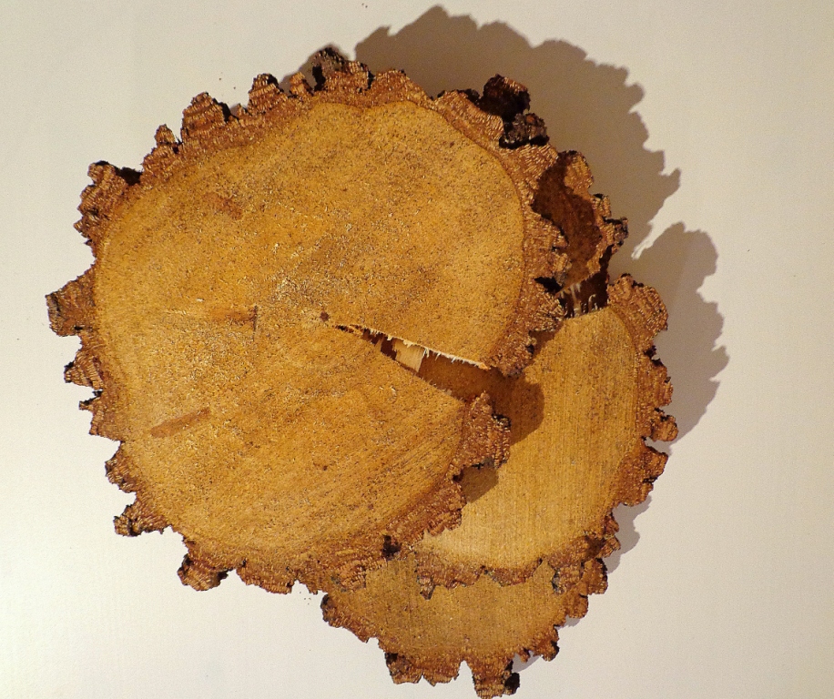 Висушені дерев’яні скибочки берези з тріщинами або без кори.