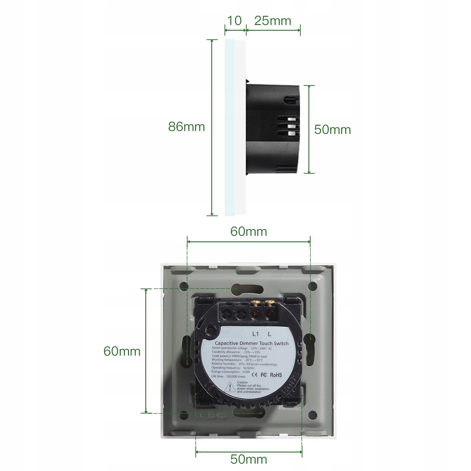 Пропонований світловий диммер - це простий і стильний пристрій. Елегантна передня панель із загартованого скла з товщиною 4 мм, завдяки якому вона дуже міцна.