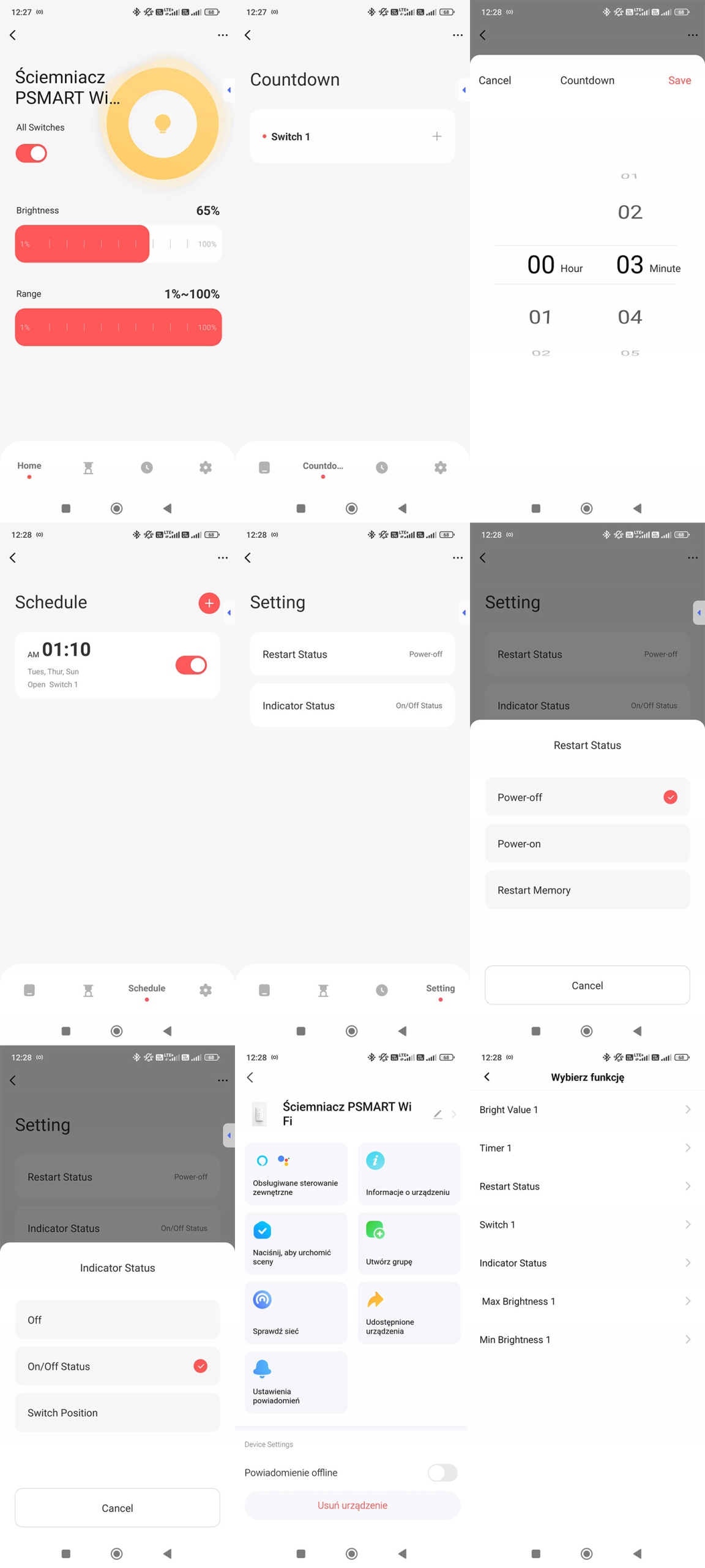 - Possibility to set the status of the switch after power loss (enabled, off or remember the last status)