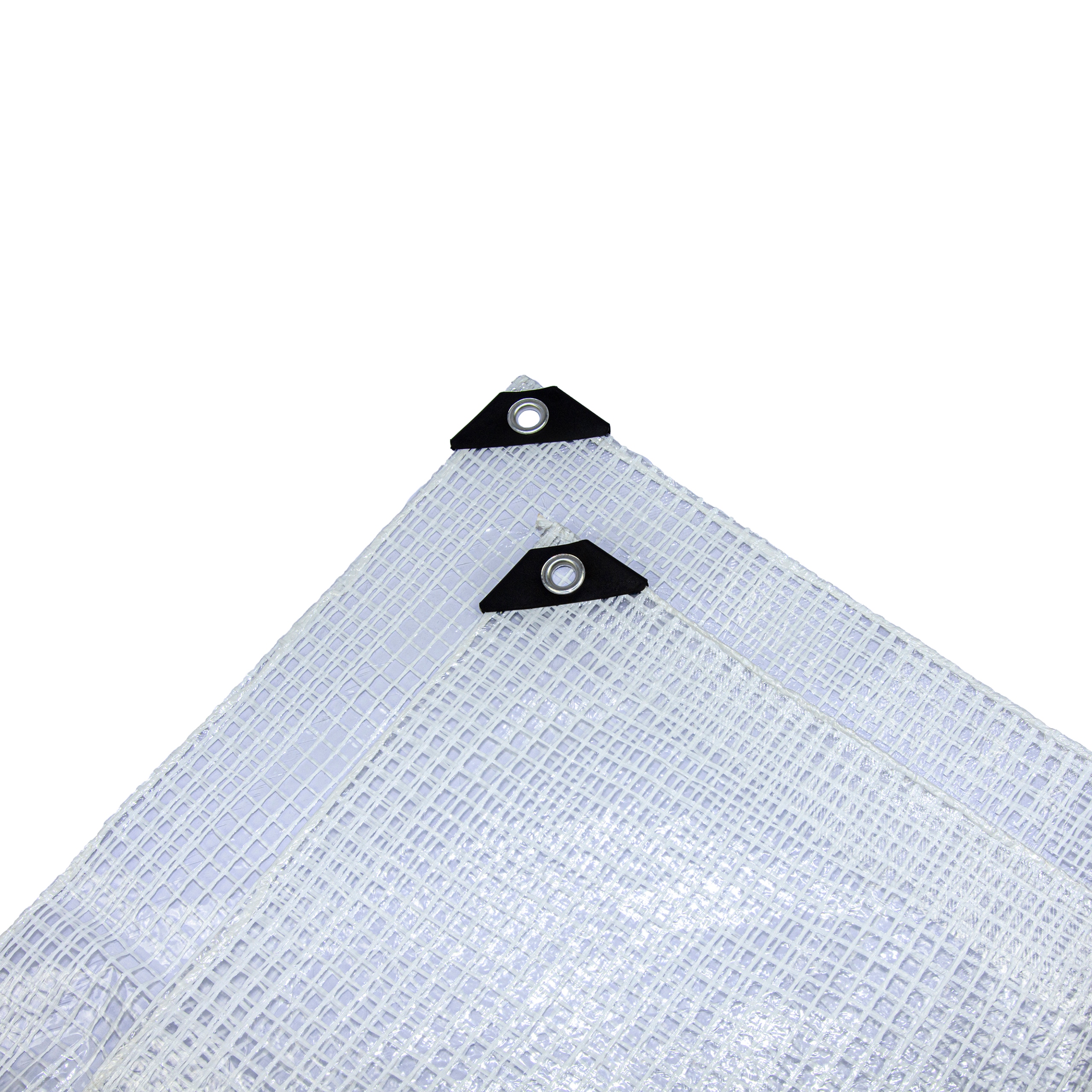 White transparent- Has metal eyelets for mounting (along the sides every 100 cm )
