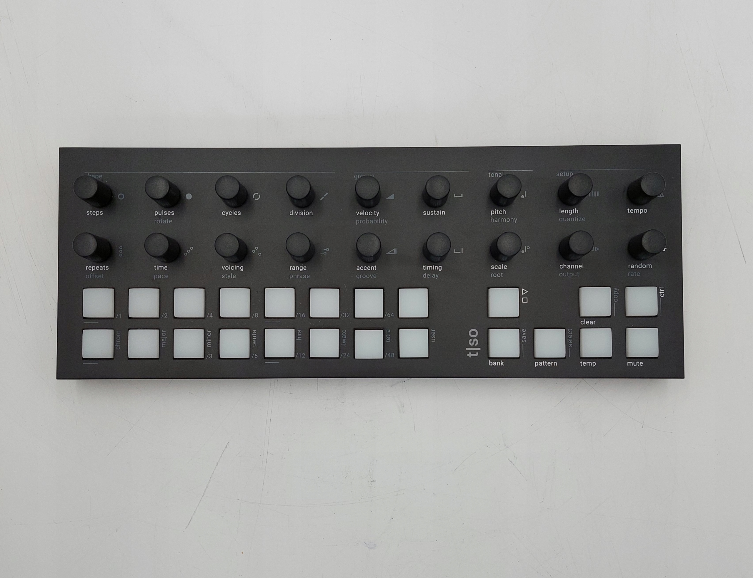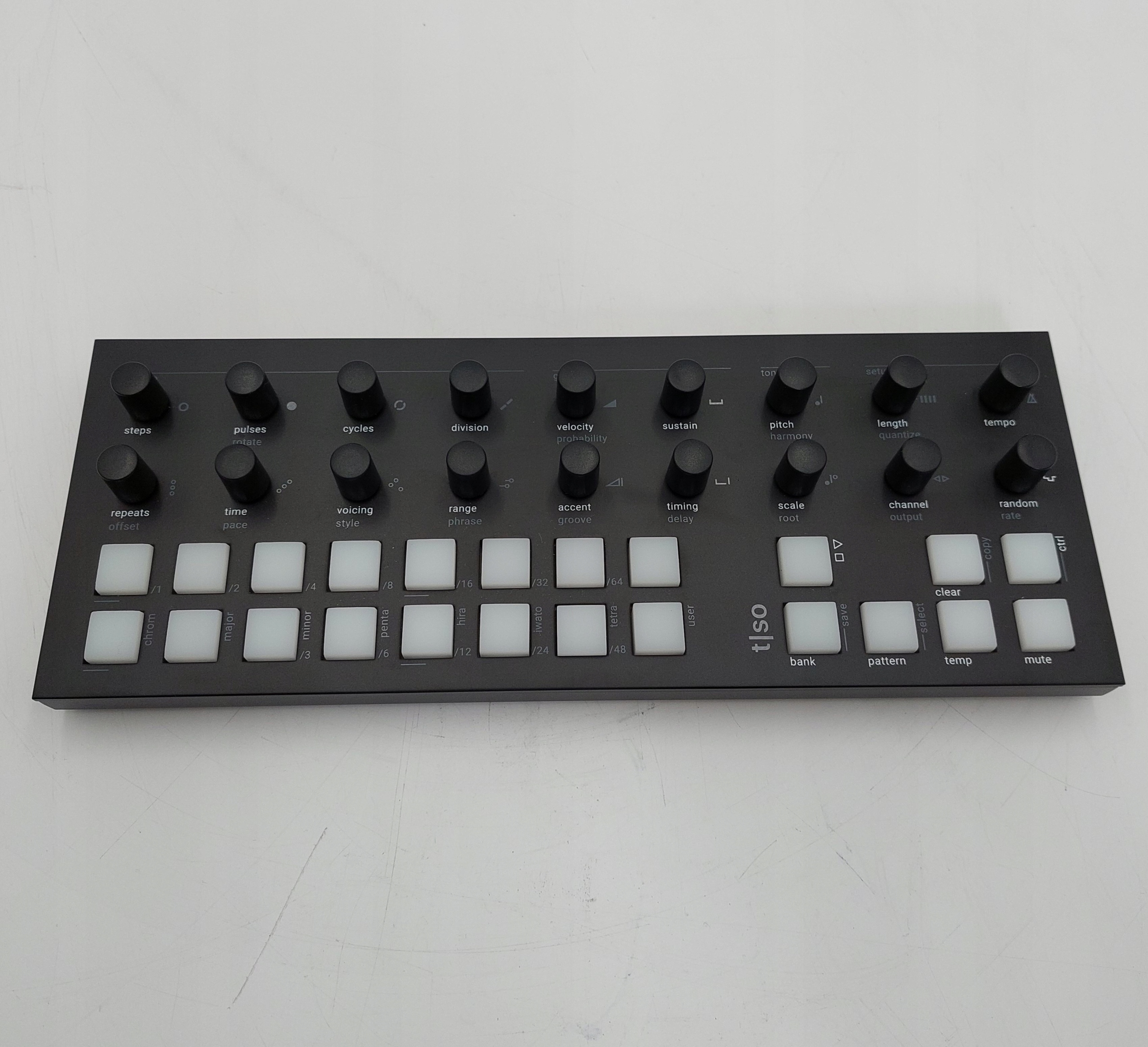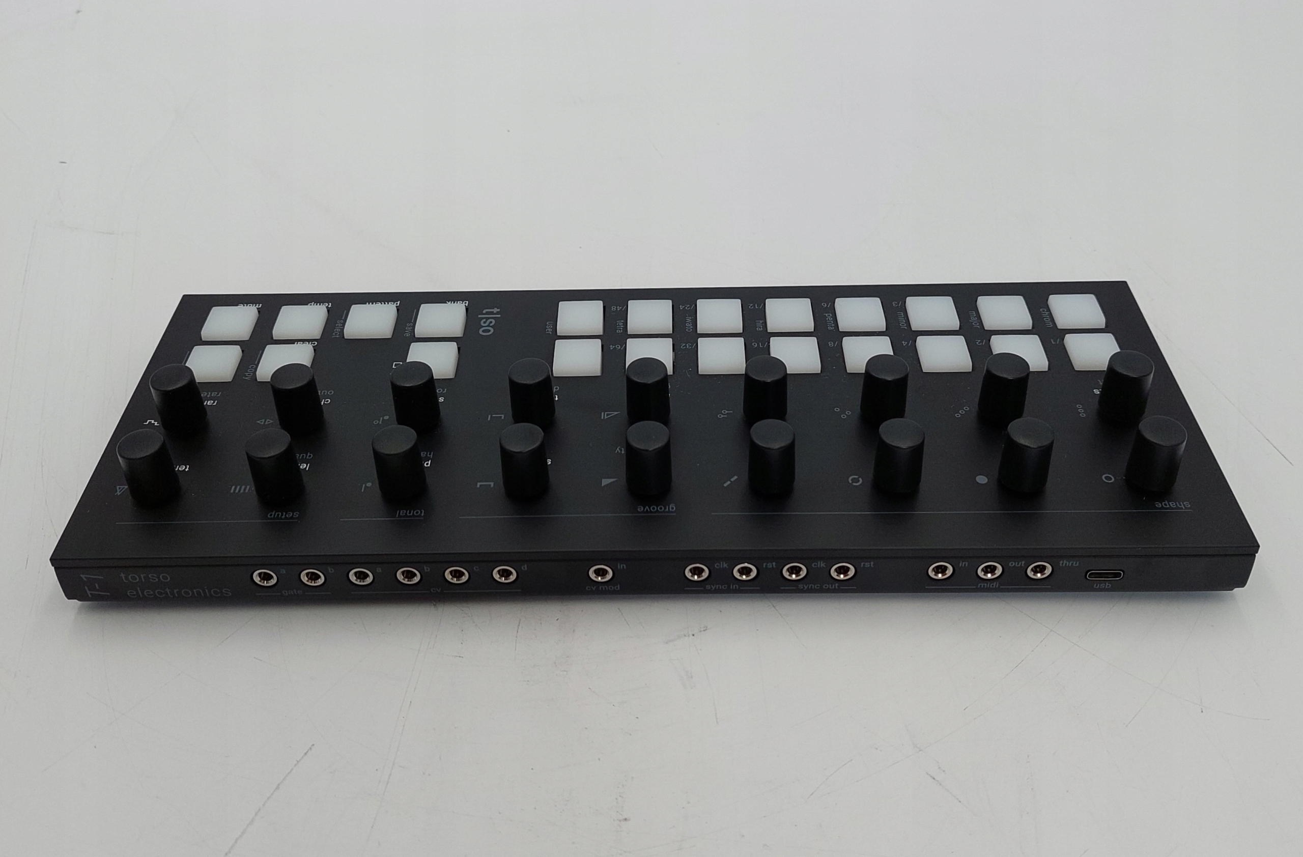Torso Electronics T-1 — це експресивний алгоритмічний секвенсор. Має генератор евклідового ритму з покроковим редагуванням, повторювач нот/арпеджіатор, генератор мелодій, 7 музичних гам + 1 користувацька гамма на доріжку, гармонічний контроль висоти, довільна модуляція кожного параметра, 16 банків із 16 шаблонами на банк, USB C (midi/ блок живлення), вхід/вихід/прохід MIDI (TRS тип A), вхід/вихід CV і шлюз, Ableton Link (WiFi). Натхненний легендарними драм-машинами та секвенсорами 1980-х і 1990-х років.