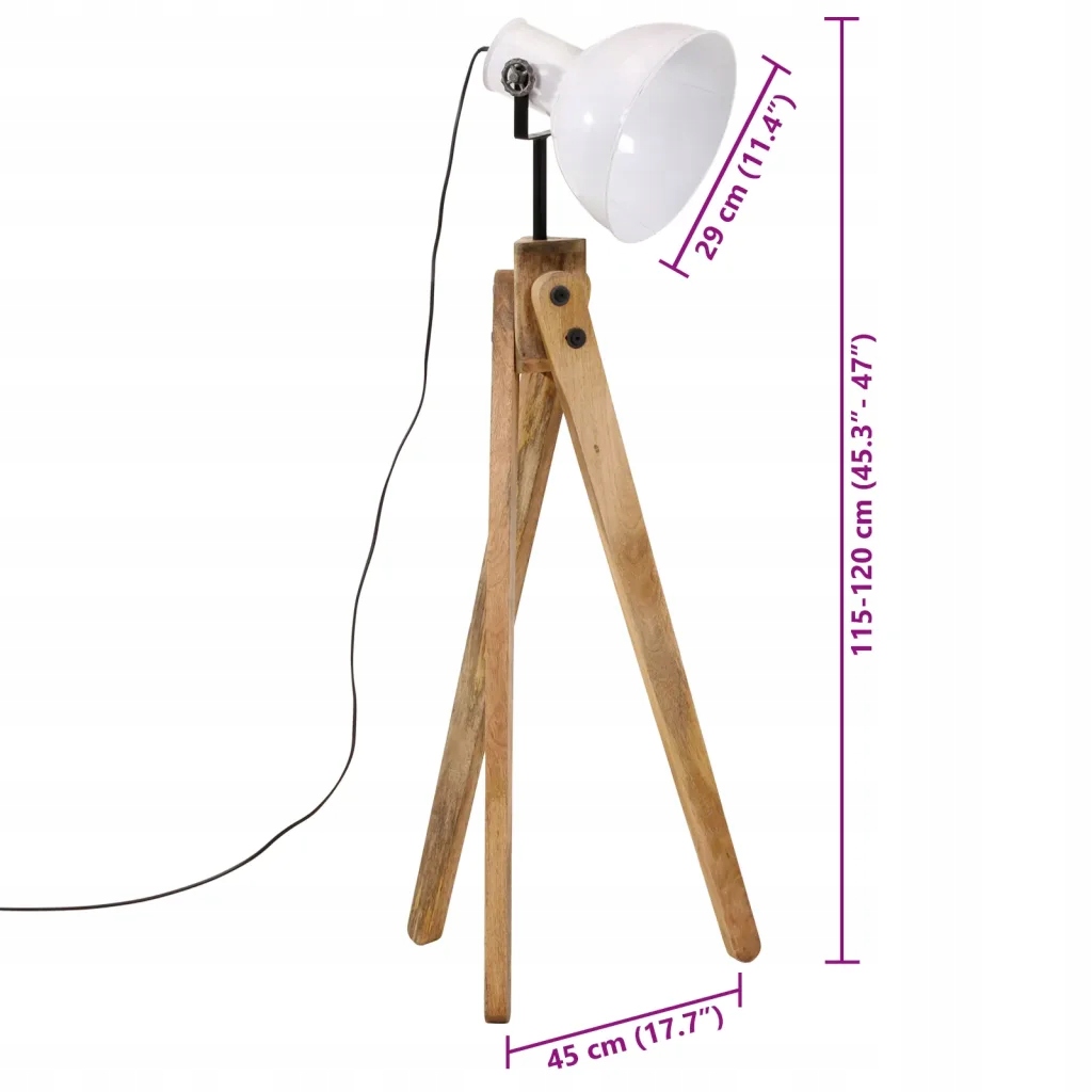 Цей торшер стане головною визначною пам'яткою у вашій вітальні, їдальні, офісі чи іншій кімнаті. Міцність і стійкість: манго - міцна тропічна деревина, з якої виготовляють масивні елементи інтер'єру. Його красиве зерно робить кожен продукт унікальним і трохи відрізняється від інших. Виріб з ручним розписом: оскільки кожна деталь виготовлена вручну, її кольори можуть відрізнятися. Світильник Е27: торшер має штуцер Е27 для лампочки максимальною потужністю 25 Вт. Ви можете підібрати і встановити лампочки Е27 різних кольорів, щоб створити атмосферу відпочинку і відпочинку. Регулювання кута: плафон цієї лампи повністю регулюється, щоб забезпечити ідеальне освітлення. Індустріальний стиль: чавунний абажур з білим покриттям ідеально впишеться в інтер'єр в стилі кантрі або індустріальний. Варто знати: ця лампа в індустріальному стилі має деякі недоліки на абажурі, які надають їй характеру та роблять її унікальною завдяки її грубому зовнішньому вигляду. Лампочки в комплект не входять. Цей прилад не призначений для використання особами (включаючи дітей) з обмеженими фізичними, сенсорними чи розумовими здібностями, або з браком досвіду та знань, якщо вони не перебувають під наглядом або не отримали інструкції щодо використання приладу особою, відповідальною за їх безпеку. Цей продукт не є іграшкою. Не дозволяйте дітям гратися з пристроєм.