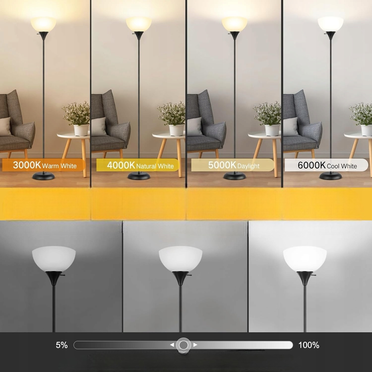 - 【Енергозберігаюча світлодіодна лампа в комплекті】До торшера з регулюванням яскравості входить енергозберігаюча світлодіодна лампа, яка економить до 90% на вартість електроенергії порівняно з галогенними лампами або лампами розжарювання. Він також сумісний із найбільш часто використовуваними лампами, включаючи світлодіодні лампи, лампи розжарювання, лампи CFL, розумні лампи та лампи RGB