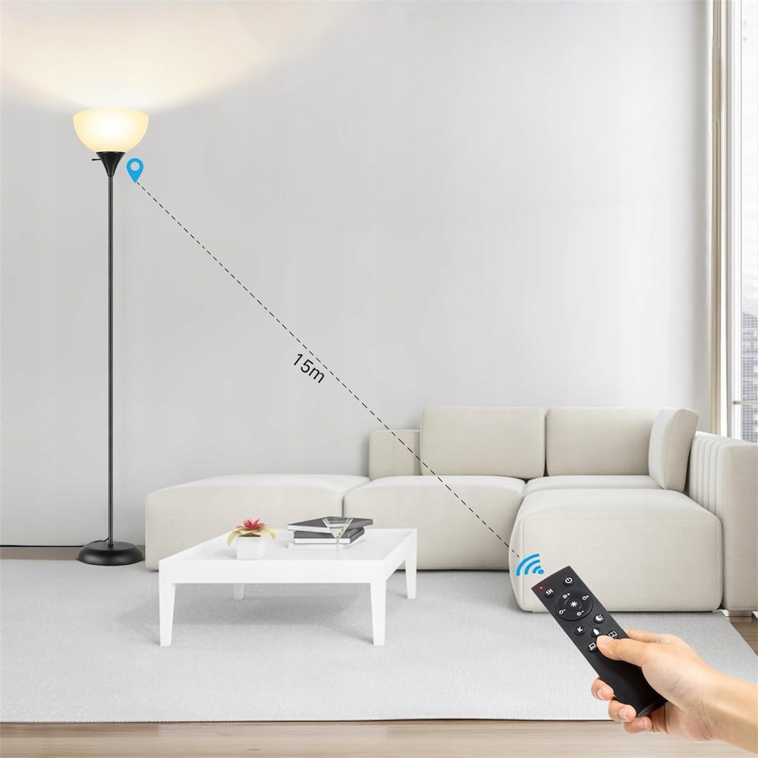 - 【Елегантний мінімалістичний дизайн】 Високоякісний абажур із матового пластику пом’якшує світло , зменшує відблиски та захищає очі від пошкоджень. Цей кутовий світильник можна легко розмістити за диваном або поруч із шафою, щоб заощадити місце. Це ідеальний декоративний торшер для спалень, віталень, офісів або класних кімнат і підходить для міського, сучасного, повсякденного або сучасного декору середини століття