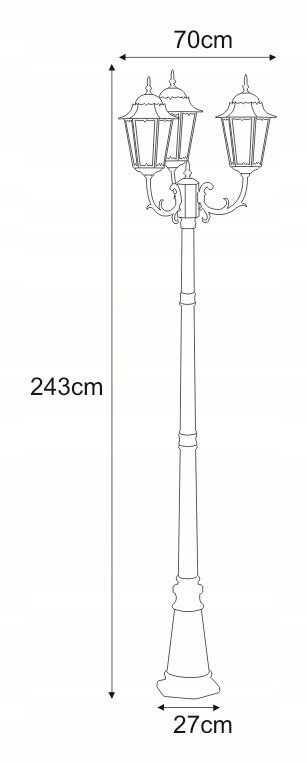 Ліхтар має три джерела світла з можливістю розміщення лампочок будь-якого кольору та потужності, що дозволить налаштувати лампу під ваші індивідуальні потреби. Додатковою перевагою є змінне джерело світла, завдяки якому світильник прослужить нам роки, а при необхідності просто замініть лампочку, щоб і надалі насолоджуватися прекрасним освітленням у дворі.