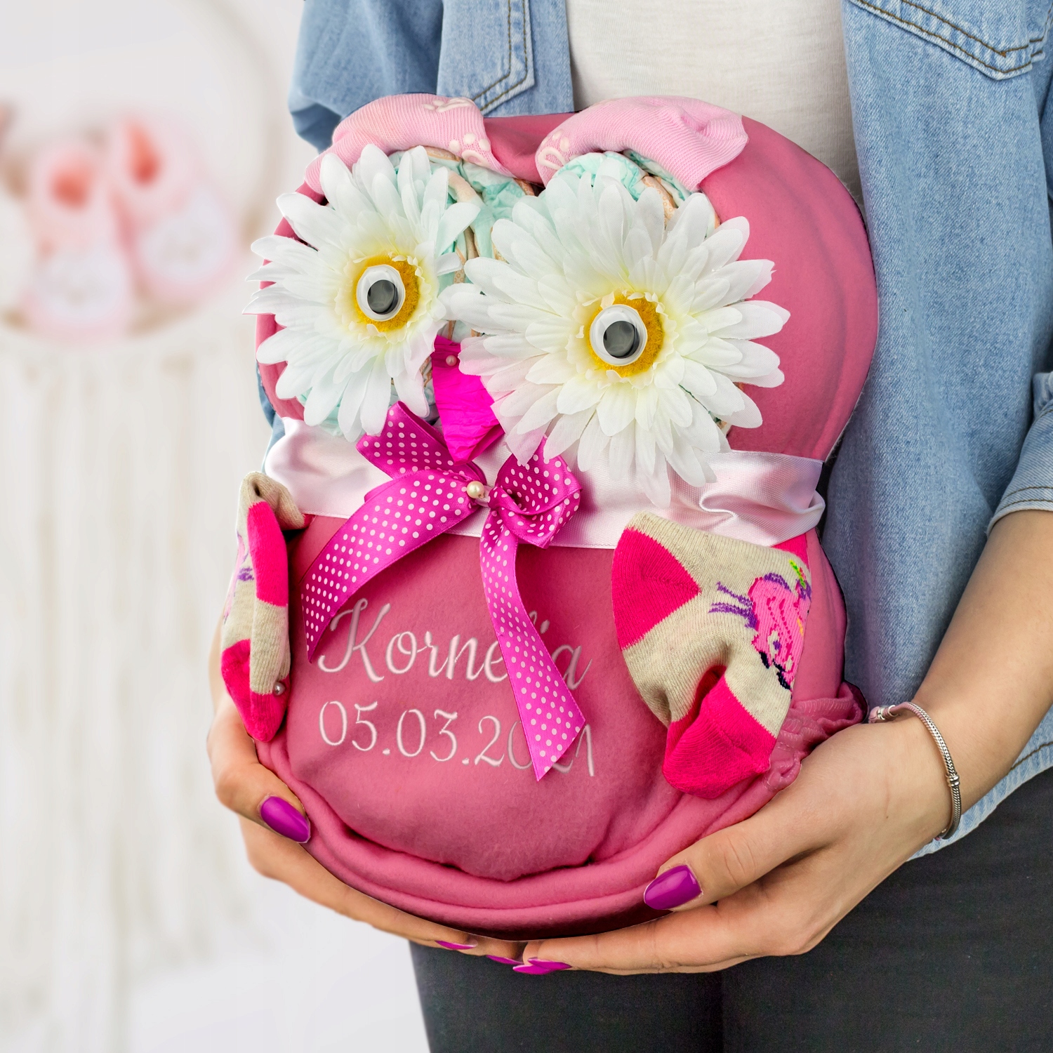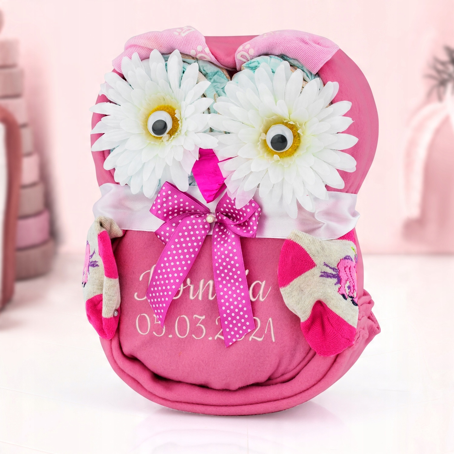 Унікальний дитячий торт у формі гарної сови - надзвичайно практичний подарунок на хрещення або день народження дитини. Включає ковдру, шкарпетки та фірмові підгузки. Рекомендуємо розмістити на ковдрі індивідуальну вишивку, яка зробить подарунок унікальним. Вигадлива сова неодмінно сподобається батькам малюка, адже до її складу входять найбажаніші елементи при народженні дитини.